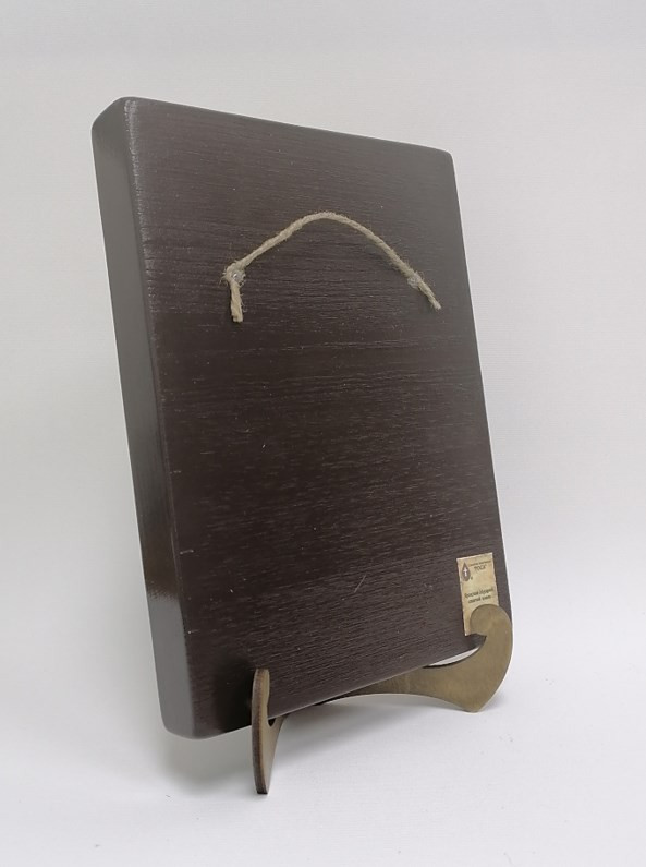 Икона на дереве покрыта несколькими слоями экологически чистого лака, который не выделяет вредных веществ и обеспечивает высокую устойчивость к выцветанию, воздействию ультрафиолета и влаги. Тыльная поверхность доски покрыта темной краской и 3 слоями защитного лака, что предотвращает выгибание иконы.
