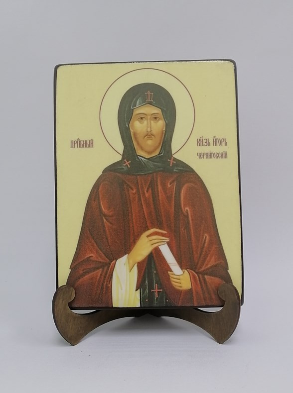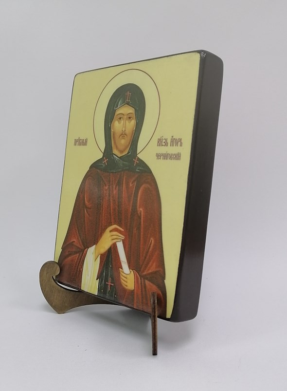 Икона на дереве "Святой Князь Игорь Черниговский, 15x20x3 см, арт Ик19267-2" станет прекрасным подарком для верующего человека, а также займет особое место в любом доме, храме или церкви.