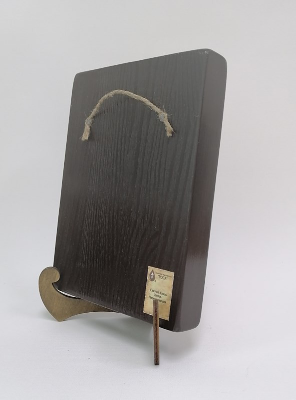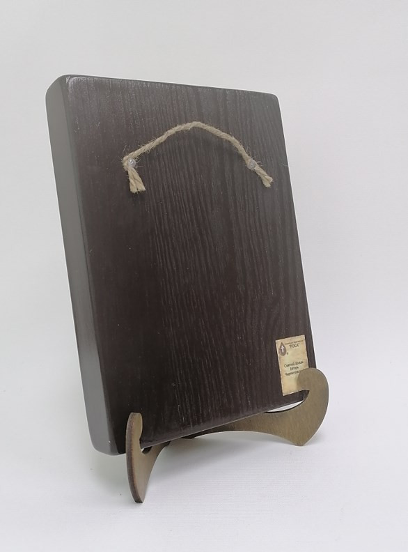 Икона на дереве покрыта несколькими слоями экологически чистого лака, который не выделяет вредных веществ и обеспечивает высокую устойчивость к выцветанию, воздействию ультрафиолета и влаги. Тыльная поверхность доски покрыта темной краской и 3 слоями защитного лака, что предотвращает выгибание иконы.