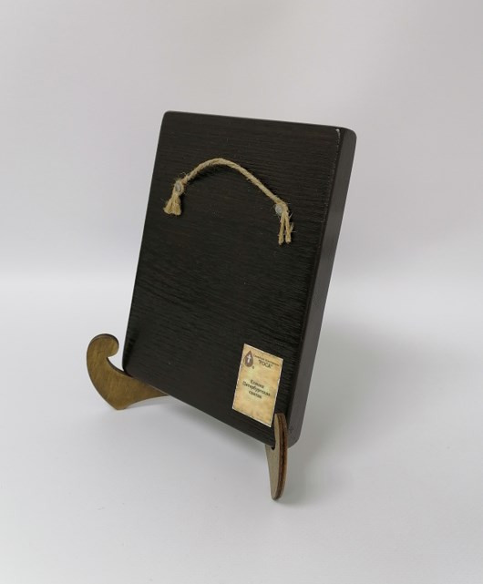 Икона на дереве покрыта несколькими слоями экологически чистого лака, который не выделяет вредных веществ и обеспечивает высокую устойчивость к выцветанию, воздействию ультрафиолета и влаги. Тыльная поверхность доски покрыта темной краской и 3 слоями защитного лака, что предотвращает выгибание иконы.