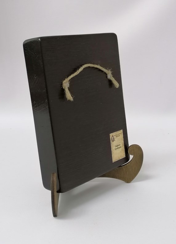 Икона на дереве покрыта несколькими слоями экологически чистого лака, который не выделяет вредных веществ и обеспечивает высокую устойчивость к выцветанию, воздействию ультрафиолета и влаги. Тыльная поверхность доски покрыта темной краской и 3 слоями защитного лака, что предотвращает выгибание иконы.