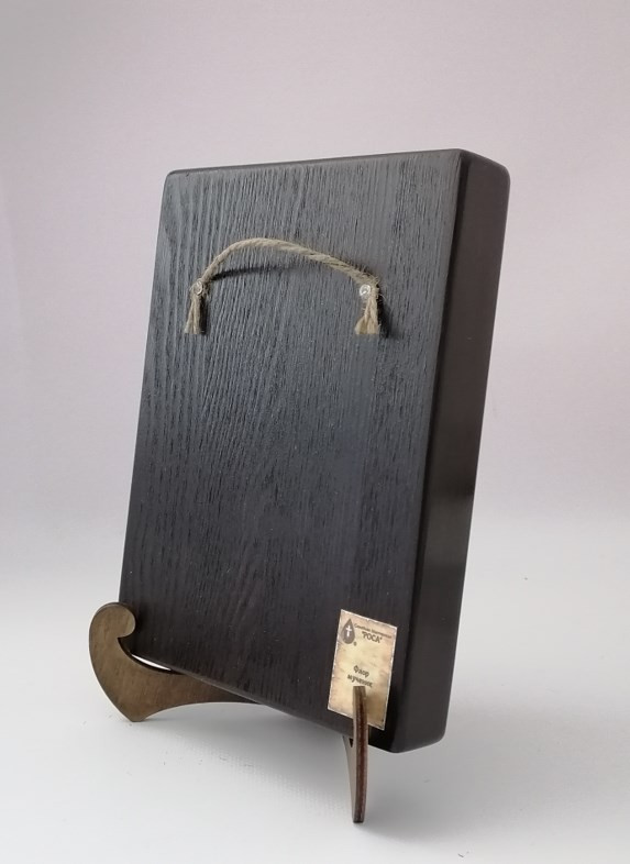 Икона на дереве покрыта несколькими слоями экологически чистого лака, который не выделяет вредных веществ и обеспечивает высокую устойчивость к выцветанию, воздействию ультрафиолета и влаги. Тыльная поверхность доски покрыта темной краской и 3 слоями защитного лака, что предотвращает выгибание иконы.