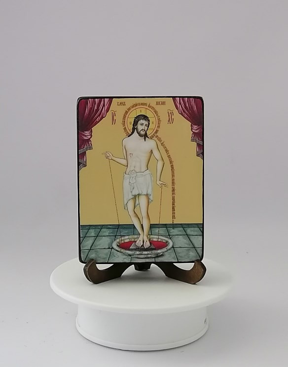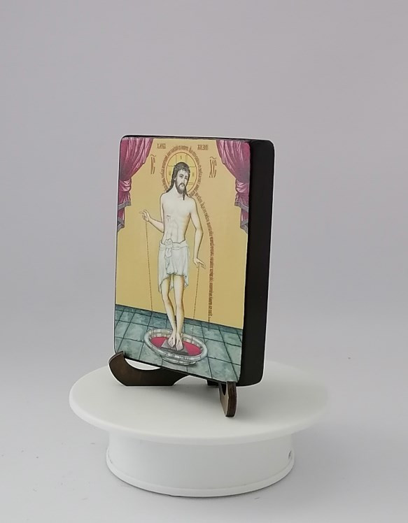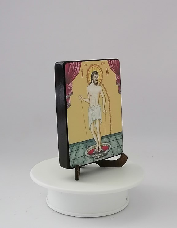 Икона на дереве покрыта несколькими слоями экологически чистого лака, который не выделяет вредных веществ и обеспечивает высокую устойчивость к выцветанию, воздействию ультрафиолета и влаги. Тыльная поверхность доски покрыта темной краской и 3 слоями защитного лака, что предотвращает выгибание иконы.