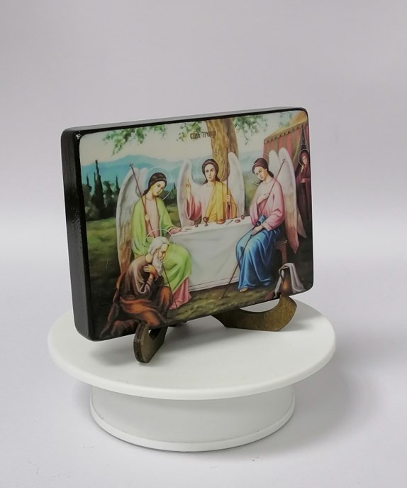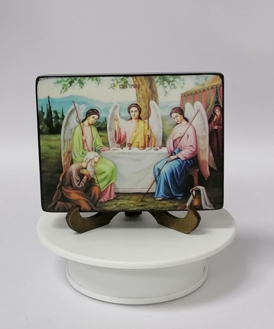 Освященная икона на дереве ручной работы "Святая Троица, 9x12x1,8 см, арт Ид5048-2" представляет собой произведение мастерского искусства, созданное мастерами Семейной Мастерской "РОСА". Икона является авторской работой, что делает ее уникальной и ценной для любого верующего.