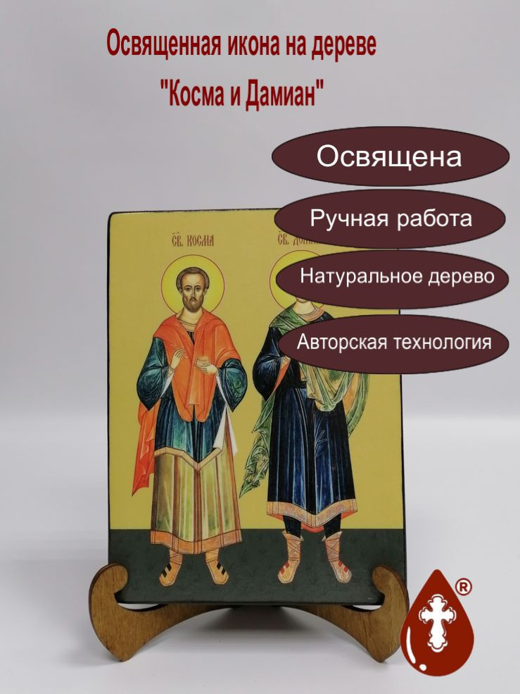 Икона на дереве "Косма и Дамиан, 15x20x3 см, арт Ид4991-2" станет прекрасным подарком для верующего человека, а также займет особое место в любом доме, храме или церкви.