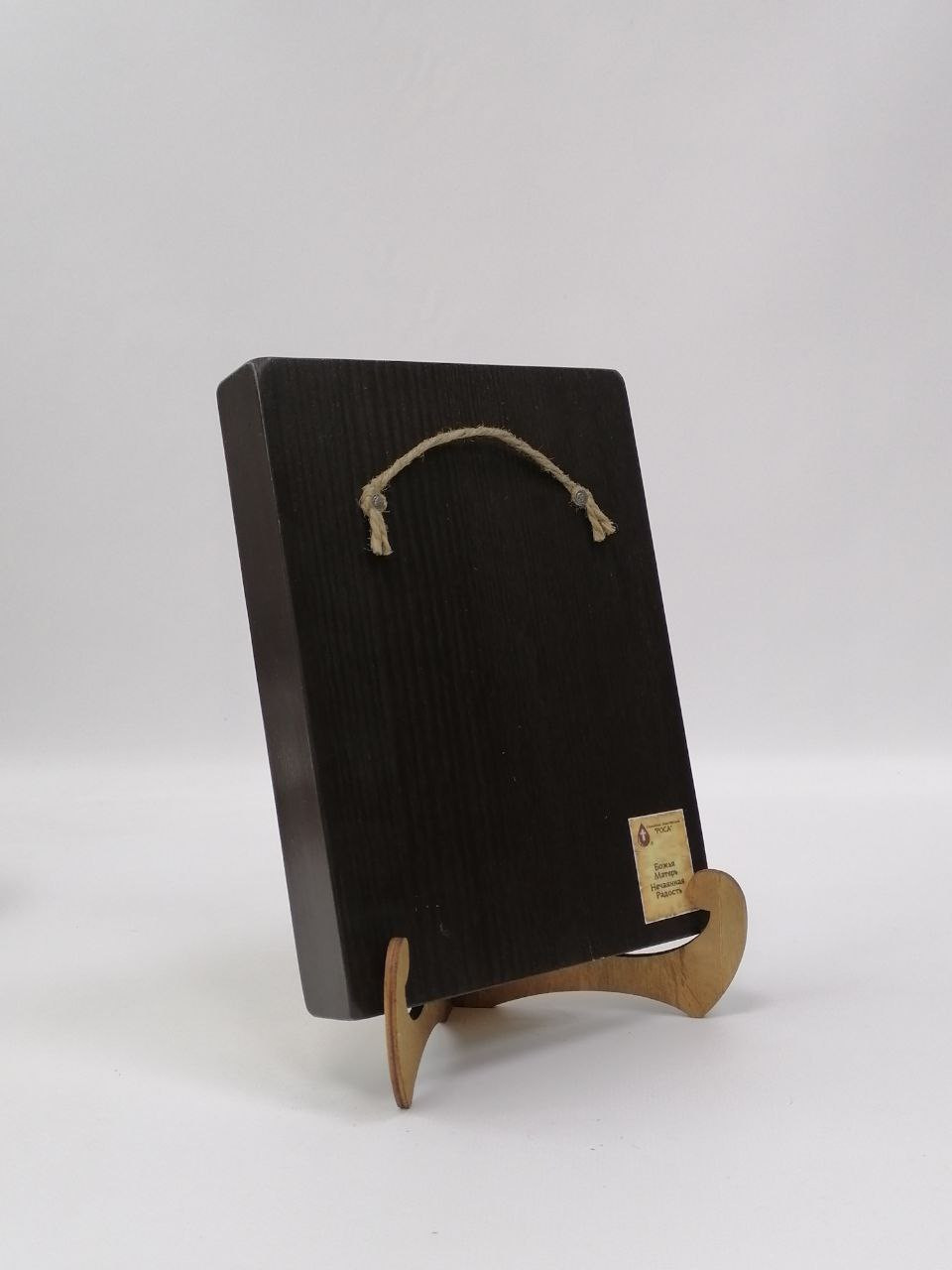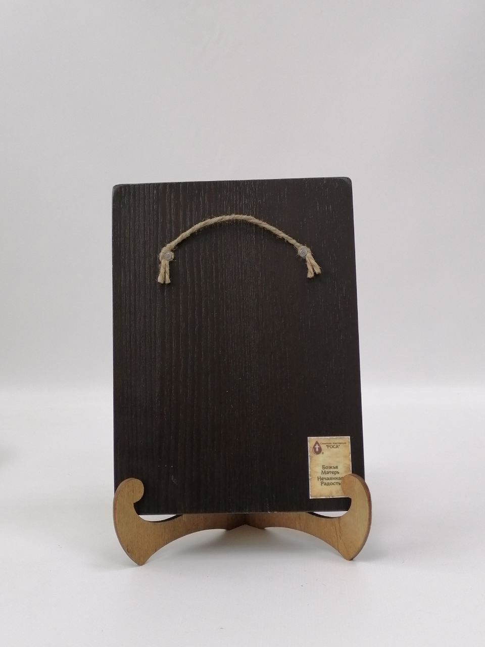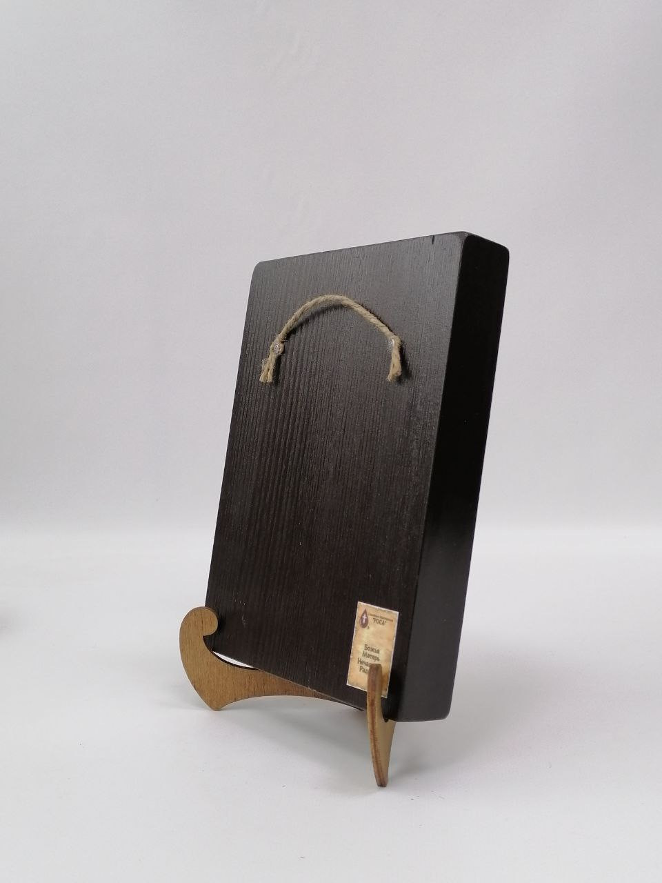 К иконе идет веревочный крепеж для удобного размещения на стене, а также этикетка с информацией об иконе. Надежная упаковка из гофрокартона и воздушно-пузырьковая пленка обеспечивают сохранность товара при транспортировке.