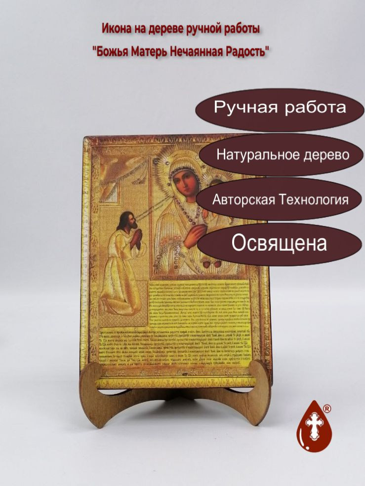 Икона на дереве "Нечаянная Радость, 15x20x3 см, арт Ик19732-2" станет прекрасным подарком для верующего человека, а также займет особое место в любом доме, храме или церкви.