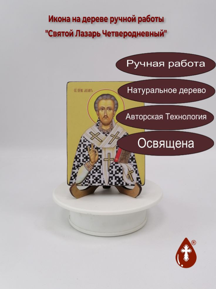 Икона на дереве "Святой Лазарь Четверодневный, 9x12x1,8 см, арт Ид4081" станет прекрасным подарком для верующего человека, а также займет особое место в любом доме, храме или церкви.