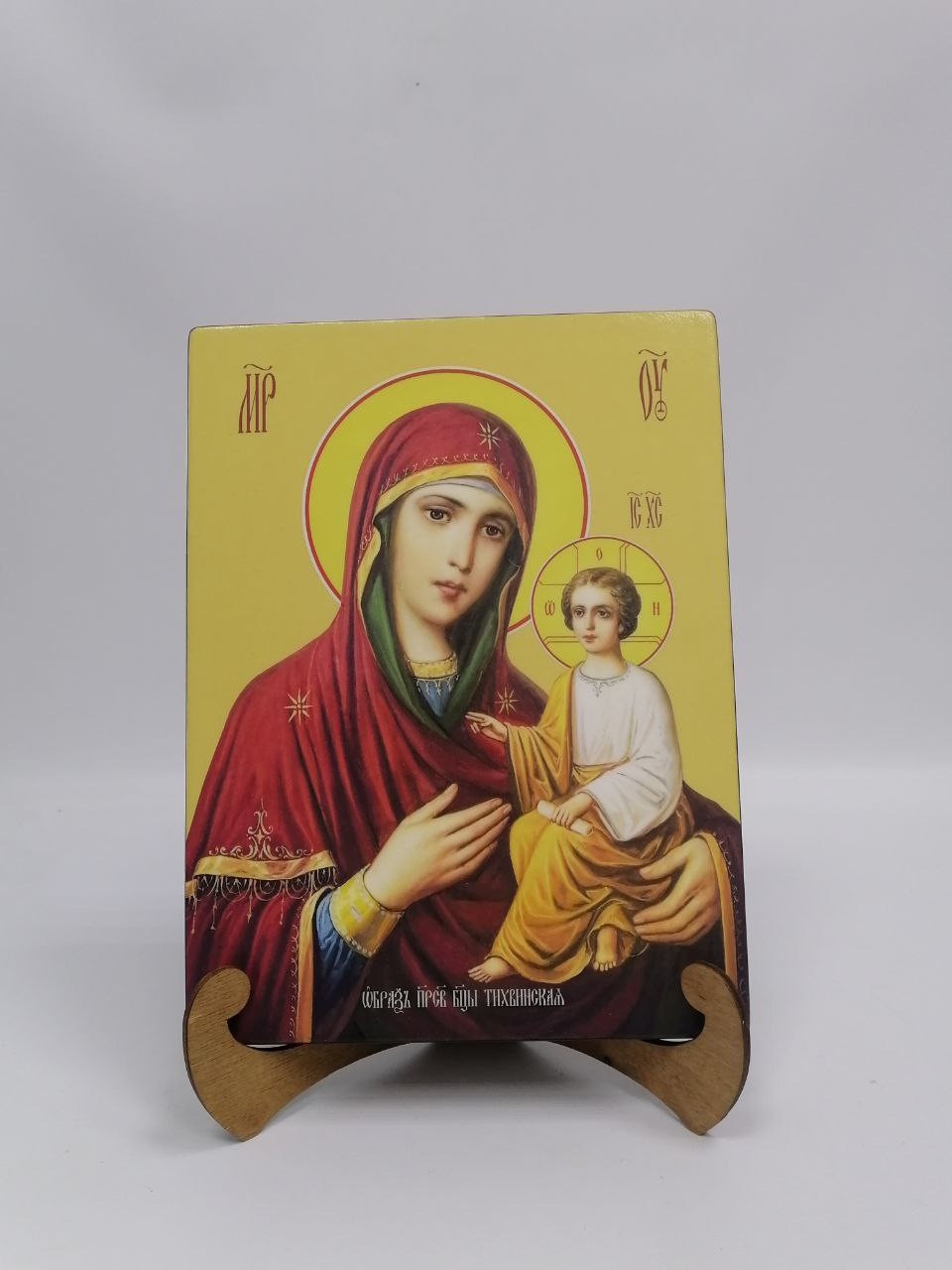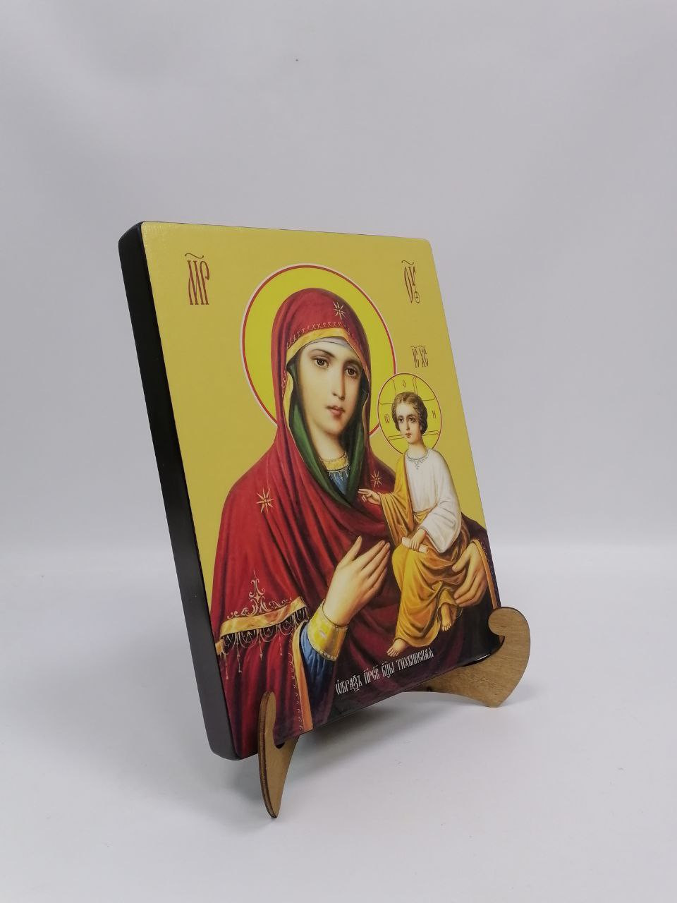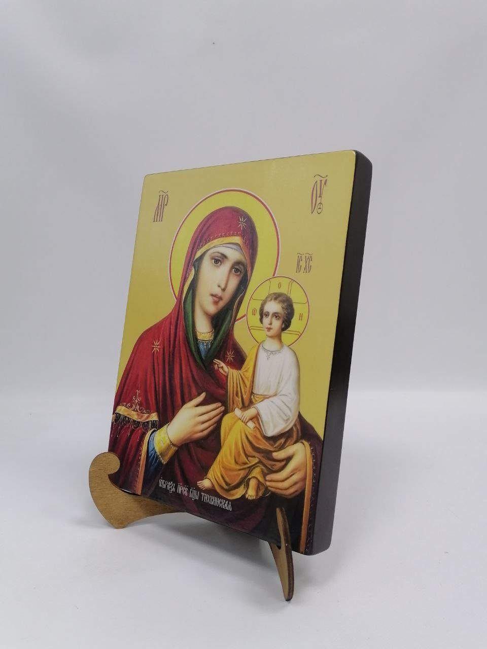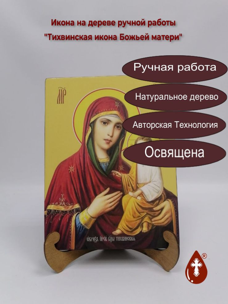 Икона на дереве "Тихвинская икона Божьей матери, 21x28x3 см, арт Ид3678-2" станет прекрасным подарком для верующего человека, а также займет особое место в любом доме, храме или церкви.