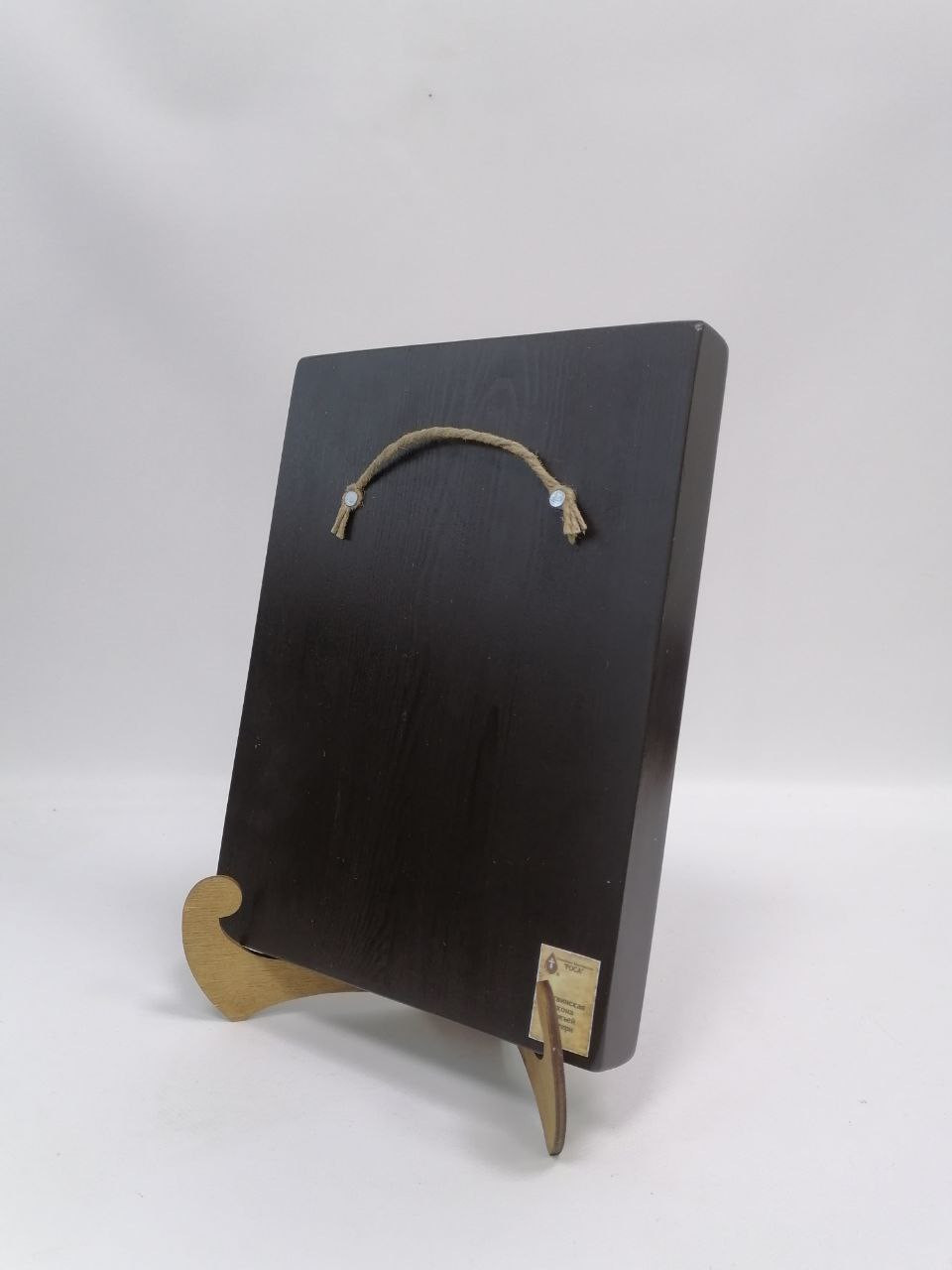 К иконе идет веревочный крепеж для удобного размещения на стене, а также этикетка с информацией об иконе. Надежная упаковка из гофрокартона и воздушно-пузырьковая пленка обеспечивают сохранность товара при транспортировке.