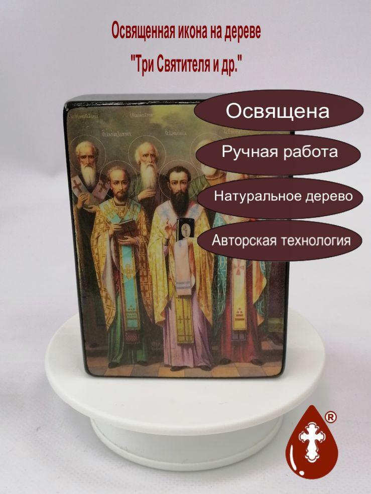 Освященная икона на дереве ручной работы "Три Святителя и др., 9x12x3 см, арт Ик20227-2" представляет собой произведение мастерского искусства, созданное мастерами Семейной Мастерской "РОСА". Икона является авторской работой, что делает ее уникальной и ценной для любого верующего.