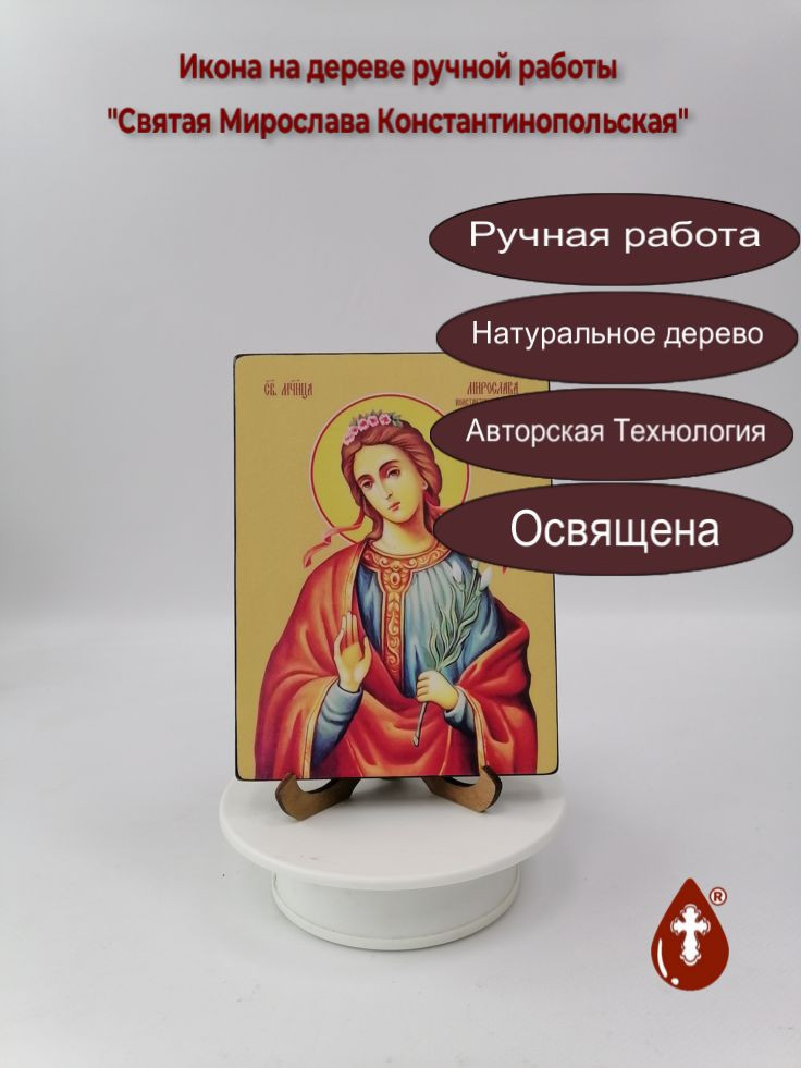 Икона на дереве "Святая Мирослава Константинопольская, 12x16x1,8 см, арт Ид4448-2" станет прекрасным подарком для верующего человека, а также займет особое место в любом доме, храме или церкви.