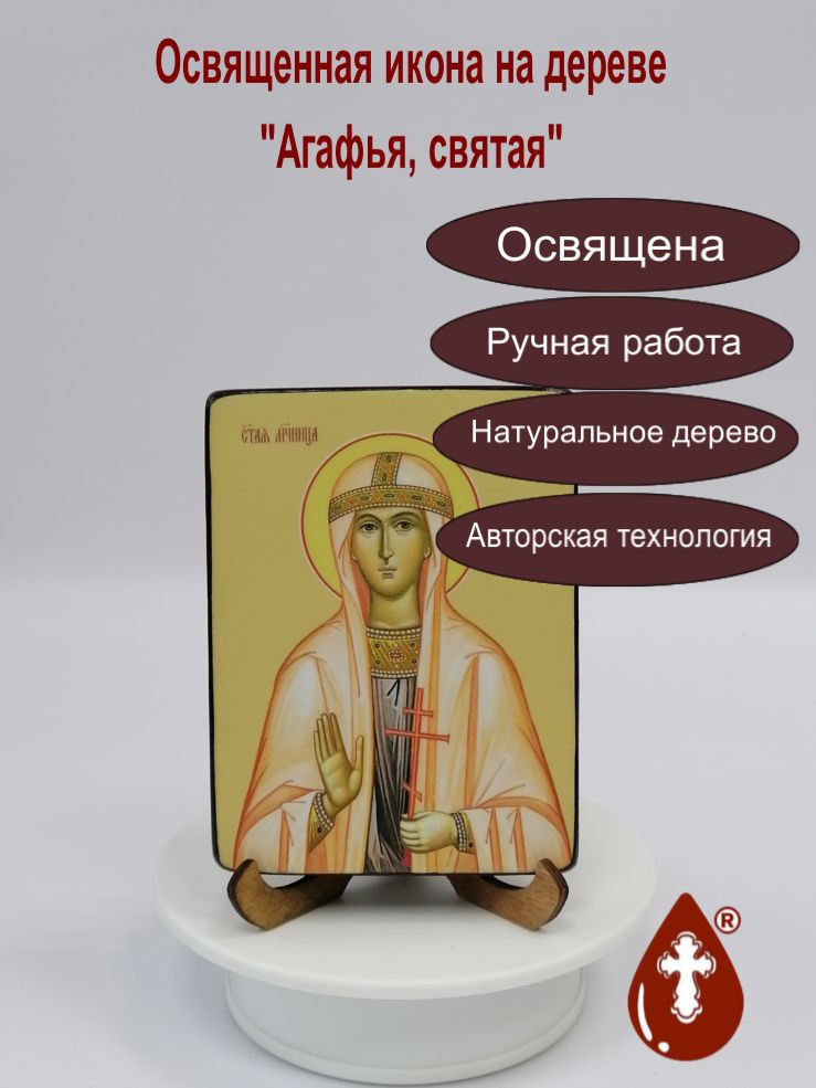 Освященная икона на дереве ручной работы "Святая Агафья, 9x12x1,8 см, арт Ид4285-2" представляет собой произведение мастерского искусства, созданное мастерами Семейной Мастерской "РОСА". Икона является авторской работой, что делает ее уникальной и ценной для любого верующего.