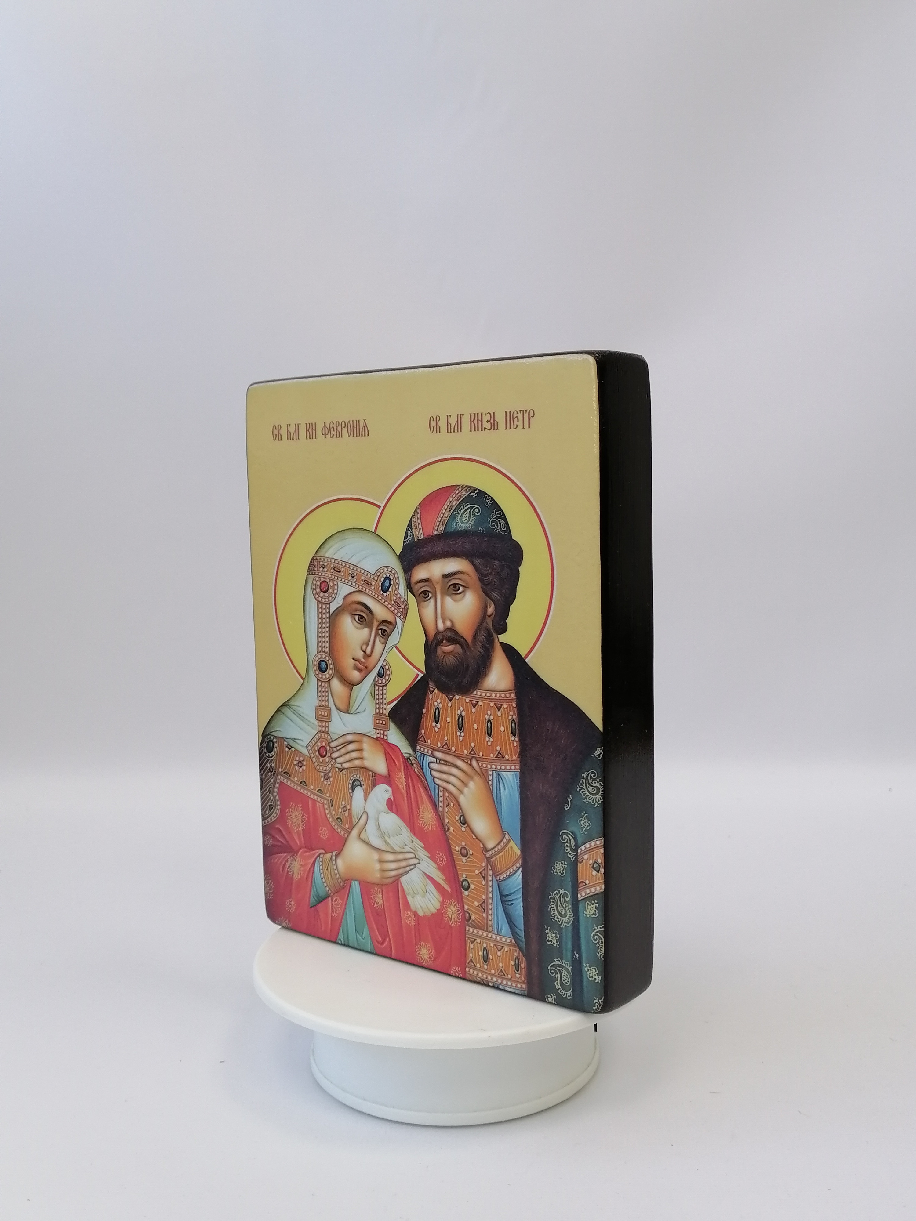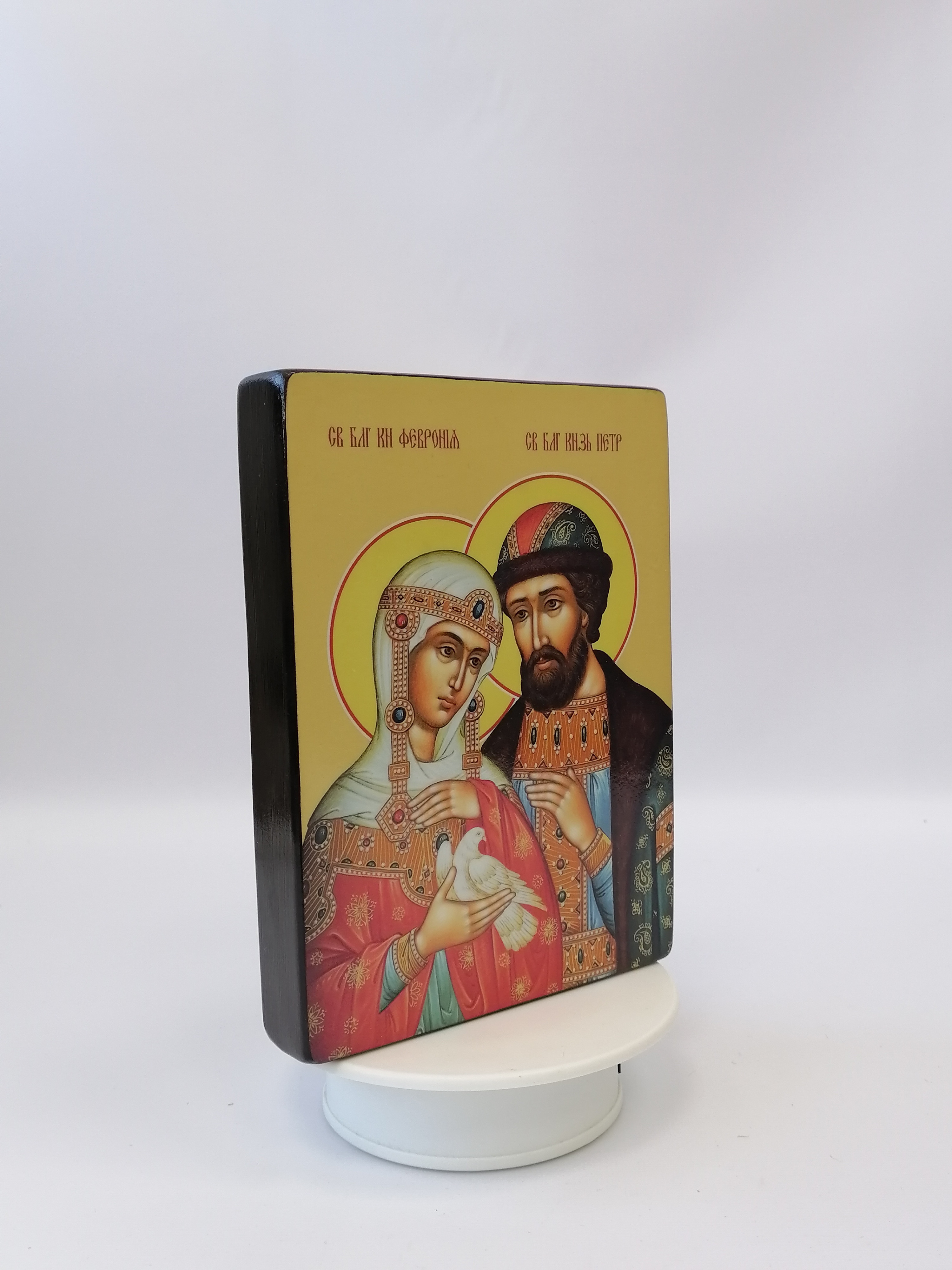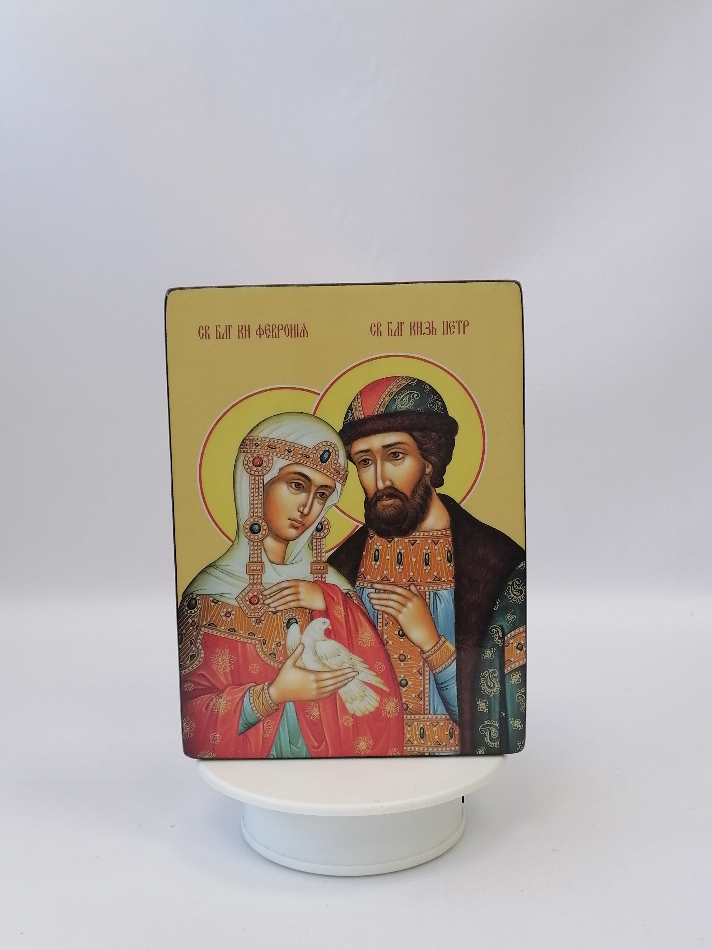 Икона на дереве "Петр и Феврония, 15x20x3 см, арт Ид5030-2" станет прекрасным подарком для верующего человека, а также займет особое место в любом доме, храме или церкви.