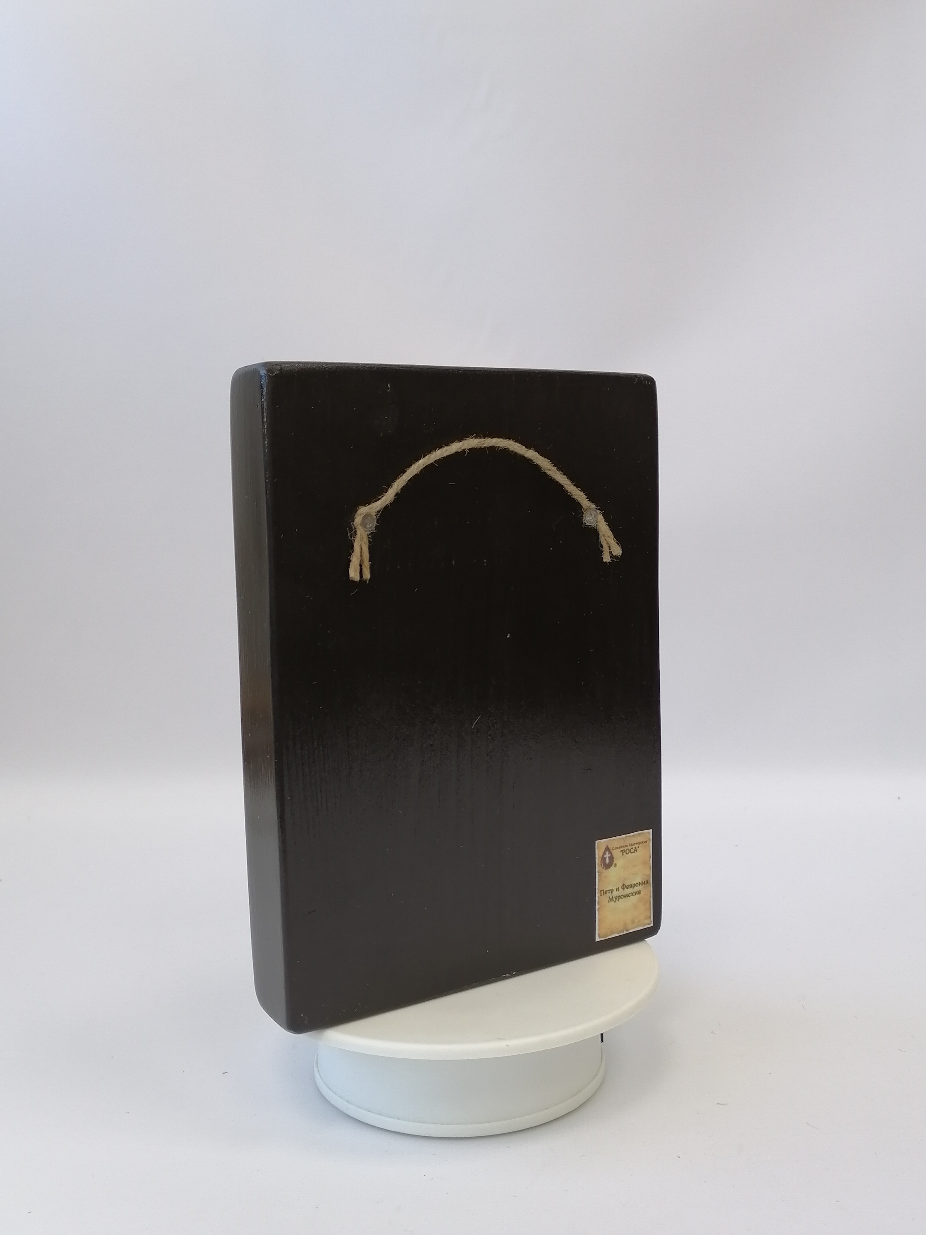 Икона на дереве покрыта несколькими слоями экологически чистого лака, который не выделяет вредных веществ и обеспечивает высокую устойчивость к выцветанию, воздействию ультрафиолета и влаги. Тыльная поверхность доски покрыта темной краской и 3 слоями защитного лака, что предотвращает выгибание иконы.