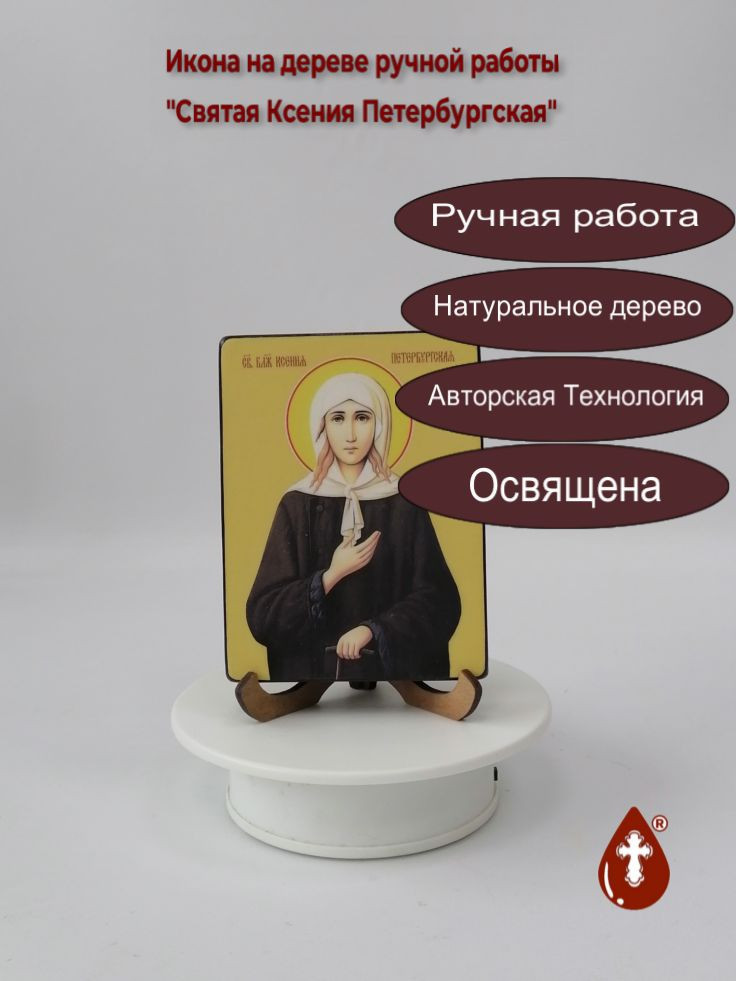 Икона на дереве "Святая Ксения Петербургская, 9x12x1,8 см, арт Ид4403-2" станет прекрасным подарком для верующего человека, а также займет особое место в любом доме, храме или церкви.