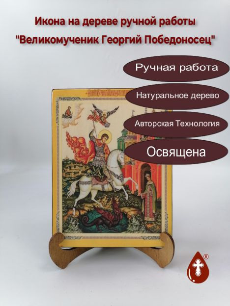 Икона на дереве "Великомученик Георгий Победоносец, 15x20x3 см, арт Ик19103-2" станет прекрасным подарком для верующего человека, а также займет особое место в любом доме, храме или церкви.