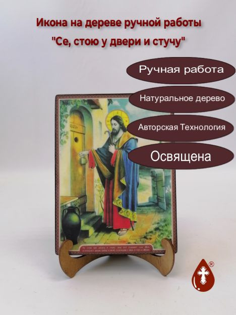 Икона на дереве "Се, стою у двери и стучу, 15x20x3 см, арт Ик20032-2" станет прекрасным подарком для верующего человека, а также займет особое место в любом доме, храме или церкви.