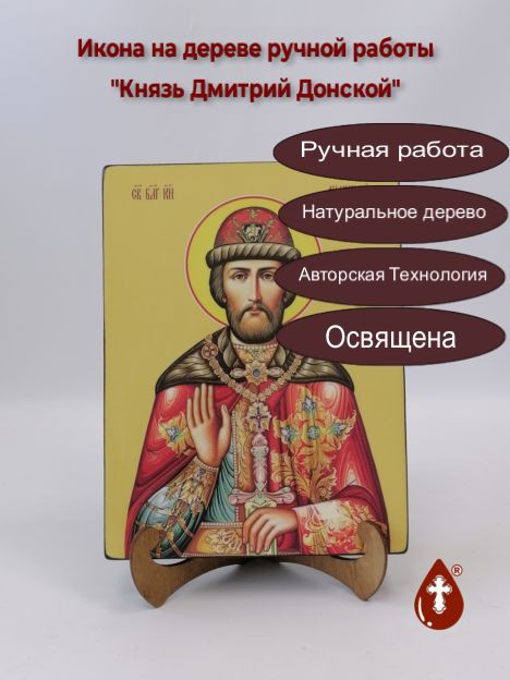 Икона на дереве "Князь Дмитрий Донской, 18x24x3 см, арт Ид3950-2" станет прекрасным подарком для верующего человека, а также займет особое место в любом доме, храме или церкви.