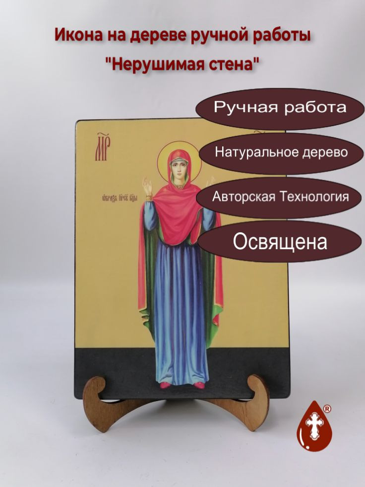 Икона на дереве "Пресвятая Богородица Нерушимая стена, 18x24x3 см, арт Ид3564-2" станет прекрасным подарком для верующего человека, а также займет особое место в любом доме, храме или церкви.
