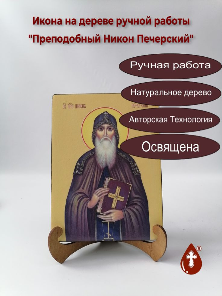 Освященная икона на дереве ручной работы "Преподобный Никон Печерский, 15x20x3 см, арт И8423-2" представляет собой произведение мастерского искусства, созданное мастерами Семейной Мастерской "РОСА". Икона является авторской работой, что делает ее уникальной и ценной для любого верующего.
