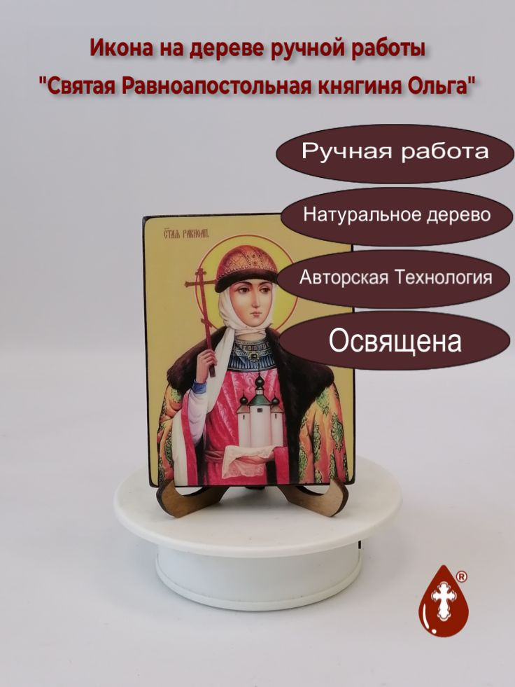 Освященная икона на дереве ручной работы "Святая Равноапостольная княгиня Ольга, 9x12x1,8 см, арт Ид4473-2" представляет собой произведение мастерского искусства, созданное мастерами Семейной Мастерской "РОСА". Икона является авторской работой, что делает ее уникальной и ценной для любого верующего.