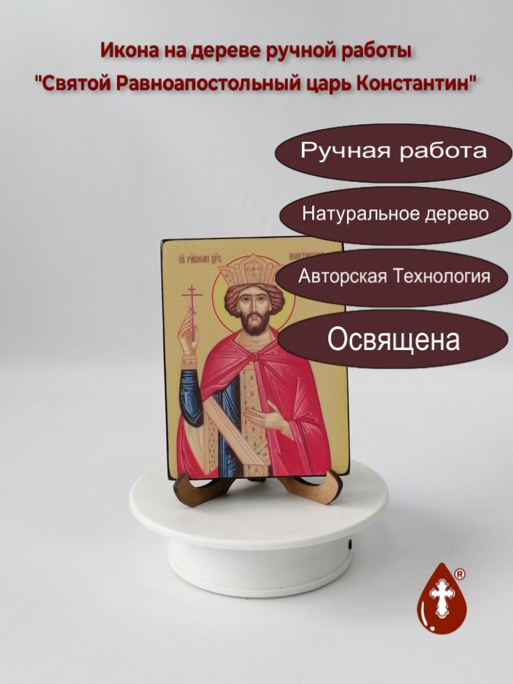 Икона на дереве "Святой Равноапостольный царь Константин, 9x12x1,8 см, арт Ид4075" станет прекрасным подарком для верующего человека, а также займет особое место в любом доме, храме или церкви.