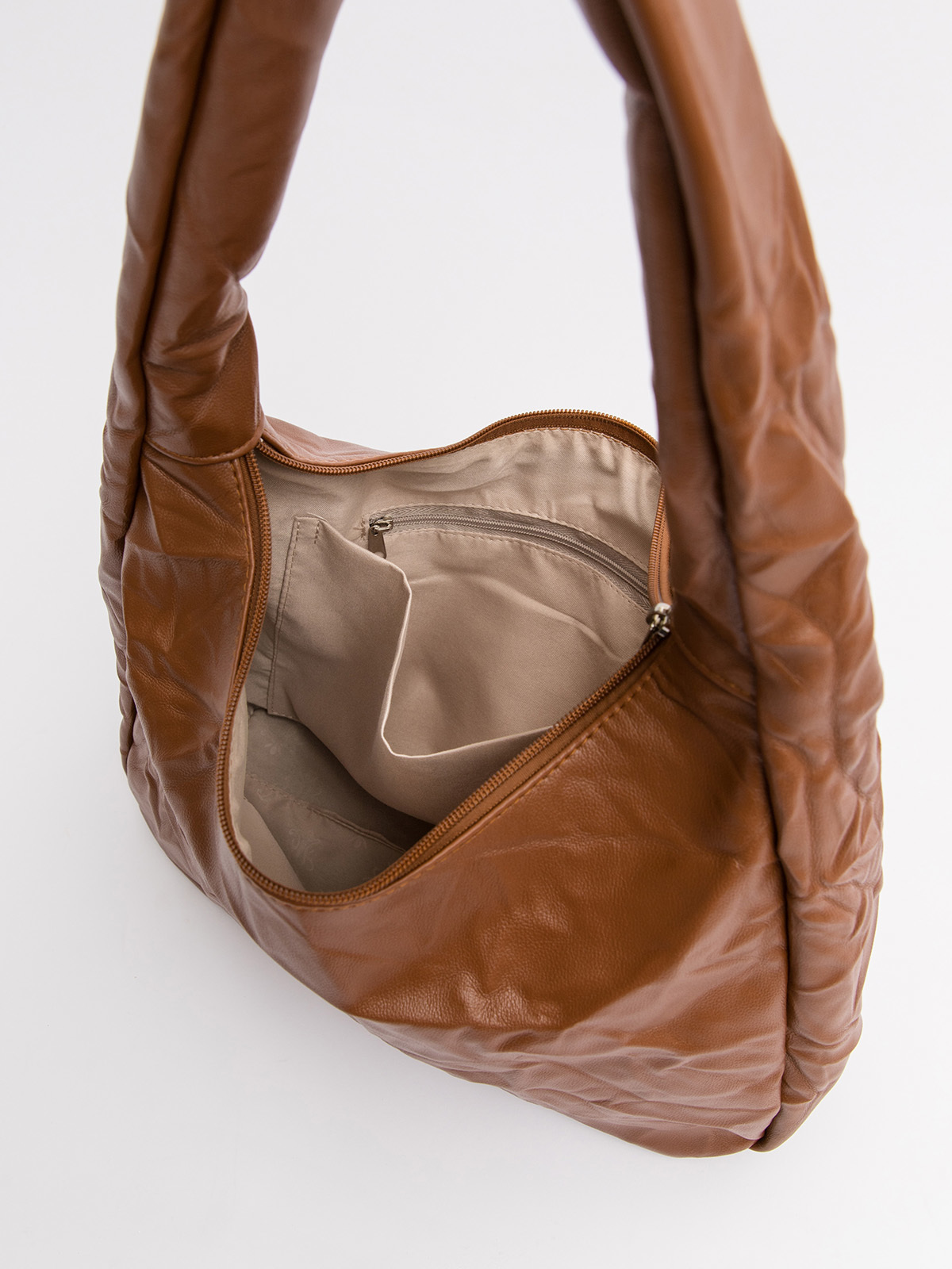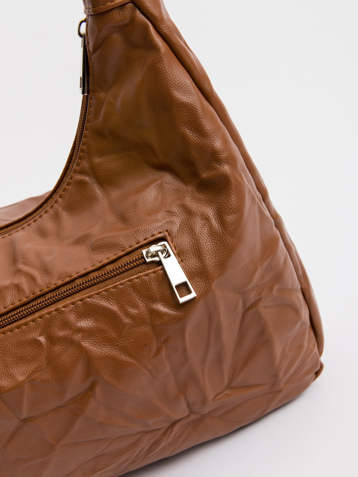 Стильная сумка-хобо из винилискожи с эффектом жатки – идеальный аксессуар для повседневных образов. Средний размер, одно основное отделение и три удобных кармана обеспечивают практичность и функциональность. Лаконичный дизайн и мягкая текстура делают её универсальным выбором под любой стиль.