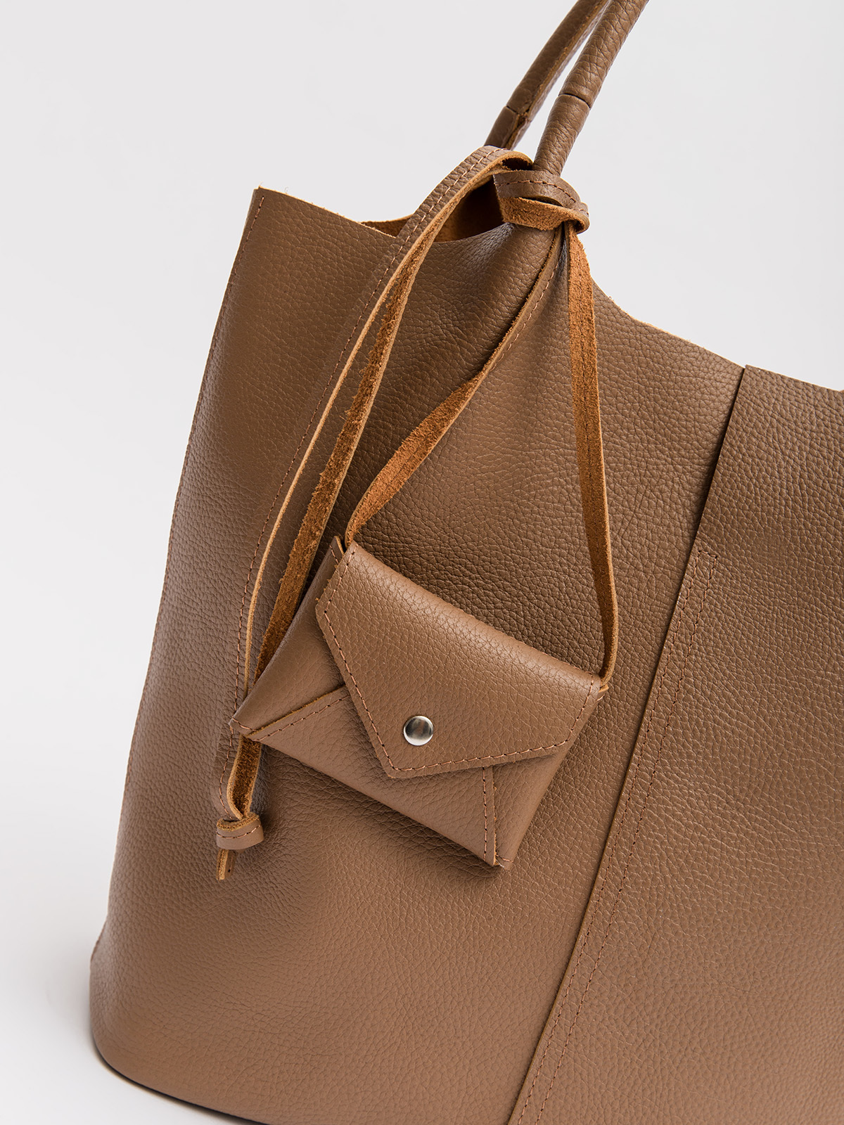 Вместительный шопер размера L из натуральной кожи для повседневного использования. Длинные плечевые ручки обеспечивают удобное ношение даже с большими покупками. Внутренняя сумка-вкладыш из оксфорда защищает содержимое и облегчает уход за сумкой. Открытый дизайн без застежки обеспечивает быстрый доступ к вещам. Идеальный выбор для шоппинга, прогулок и путешествий - сочетает практичность с элегантным минимализмом.