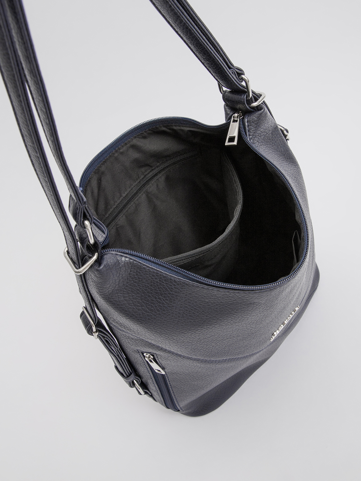 Универсальная сумка-мешок трансформер размера L — идеальный спутник для динамичной повседневной жизни. Благодаря регулируемым лямкам на пряжках она легко превращается из стильной сумки-хобо в удобный рюкзак, подстраиваясь под ваши потребности. Практичный дизайн включает отдел на молнии, два вертикальных кармана спереди и дополнительный карман сзади для безопасного хранения мелочей. Внутри вас ждёт продуманная организация: два кармана на молнии для ценных вещей и открытый карман для быстрого доступа. Сдержанный стиль и многофункциональность делают эту сумку must-have для тех, кто ценит комфорт и эстетику.