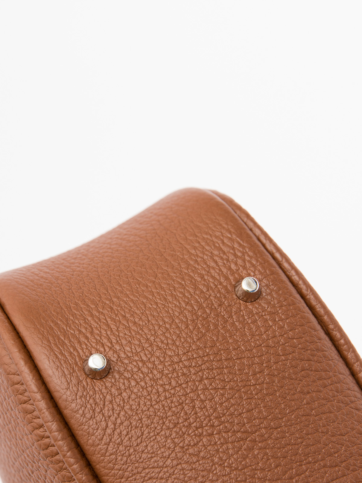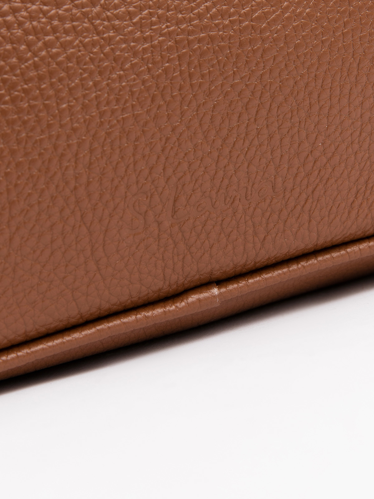 Стильный аксессуар - саквояж из натуральной кожи габарита М в трендовой форме east-west (такса). Жёсткая конструкция с широким бочком вмещает все необходимое для работы и прогулок. Прочные ручки с кнопочным креплением сохраняют чёткую форму сумки. Универсальный дизайн легко дополнит деловой, повседневный или романтичный образ. Идеальное сочетание модного силуэта и практичности для городской жизни.