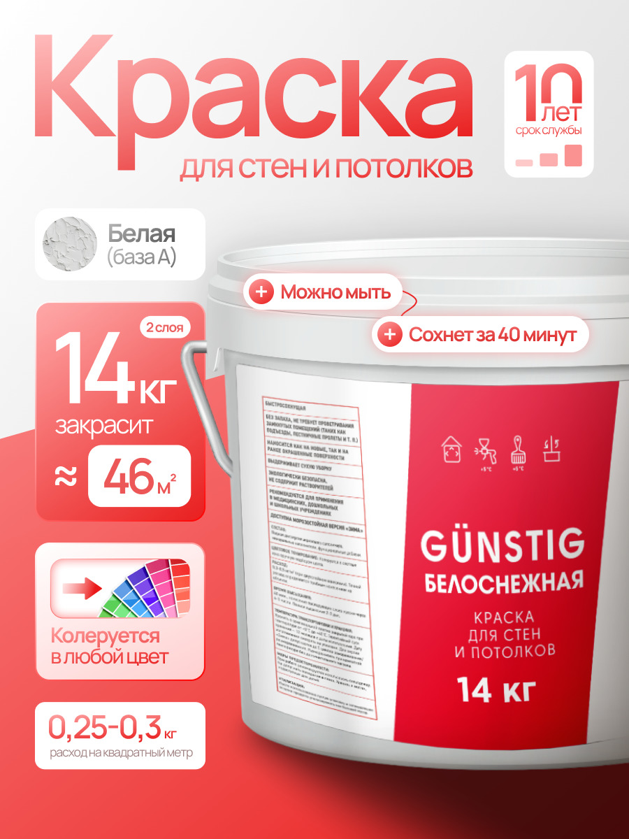 Краска для стен и потолка Gunstig Burstenhoff - это высококачественный продукт, который предназначен для внутренних и наружных работ.