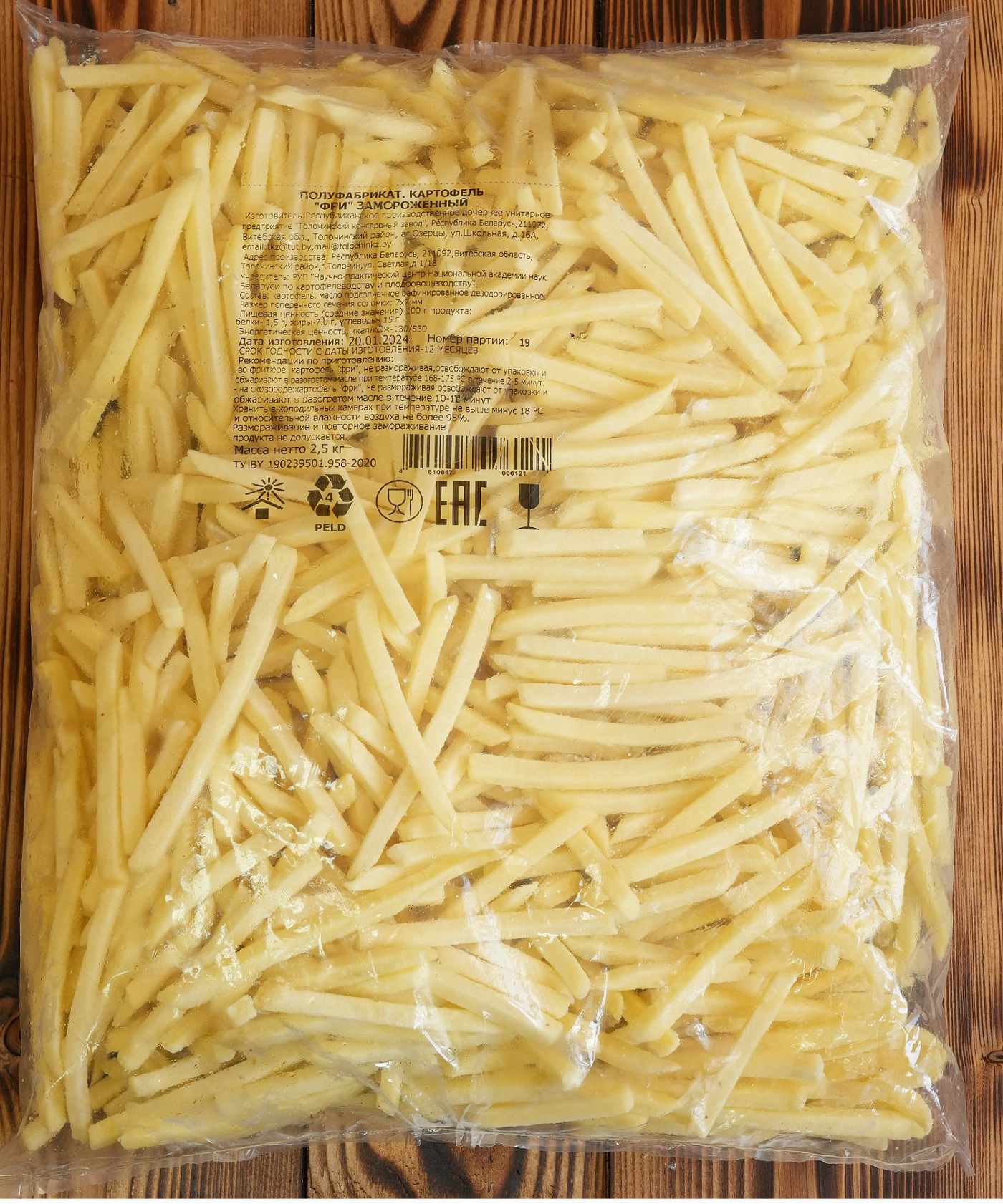 Картофель фри обжаренный, 7*7 и 9*9, вес 750гр и 2,5кгДольки в кожуре, без кожуры, в специях и без.