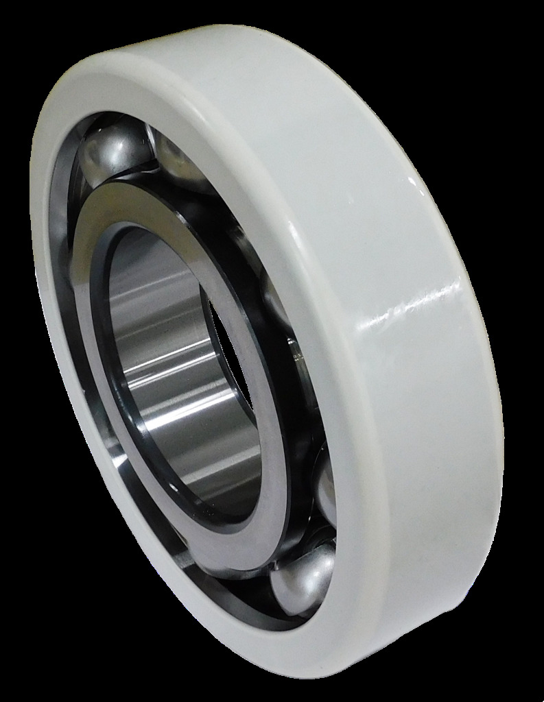 Подшипник токоизолированный применяется на электродвигателях с переменной частотой вращения для защиты от контурных токов, вызванных работой полупроводникового преобразователя. Специально плазменное напыление на внешнее кольцо из оксида алюминия создает надежный изоляционный слой, выдерживающий напряжение до 3000 вольт. Токоизолированный подшипник имеет такие же характеристики и размеры как стандартный подшипник, поэтому подходит для большинства типов электродвигателей и может быть легко установлен во время технического обслуживания мотора.