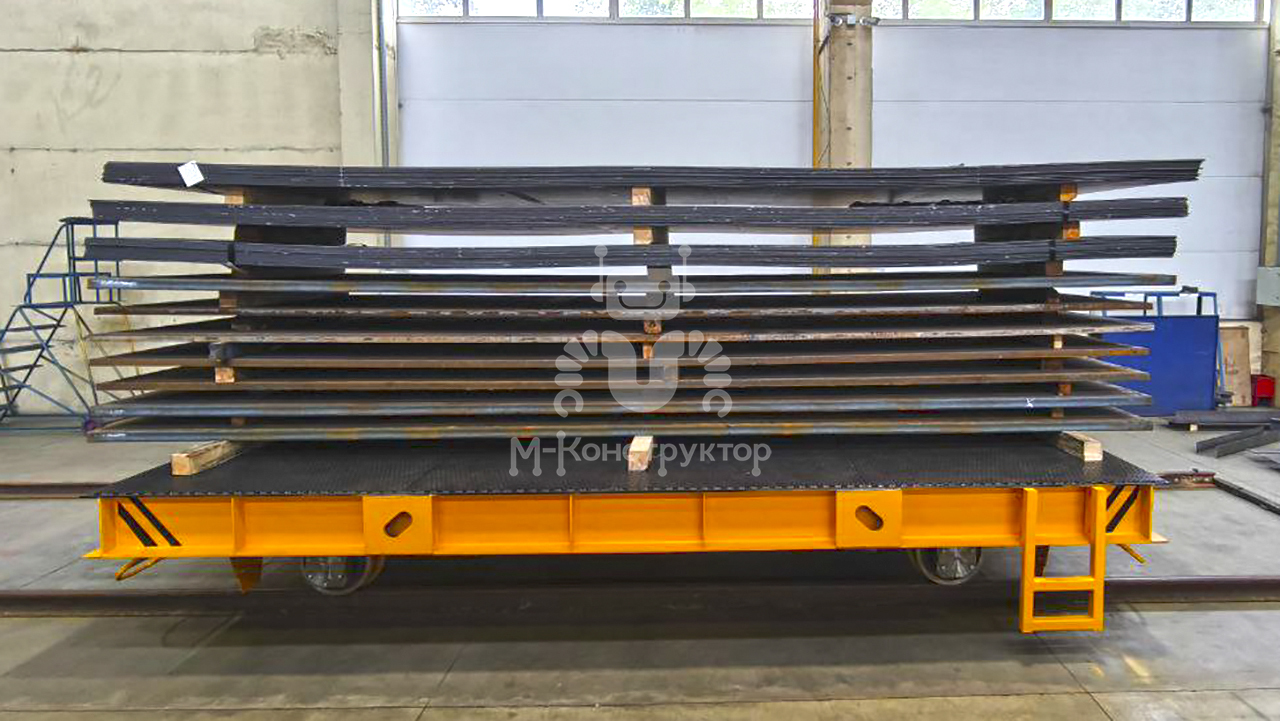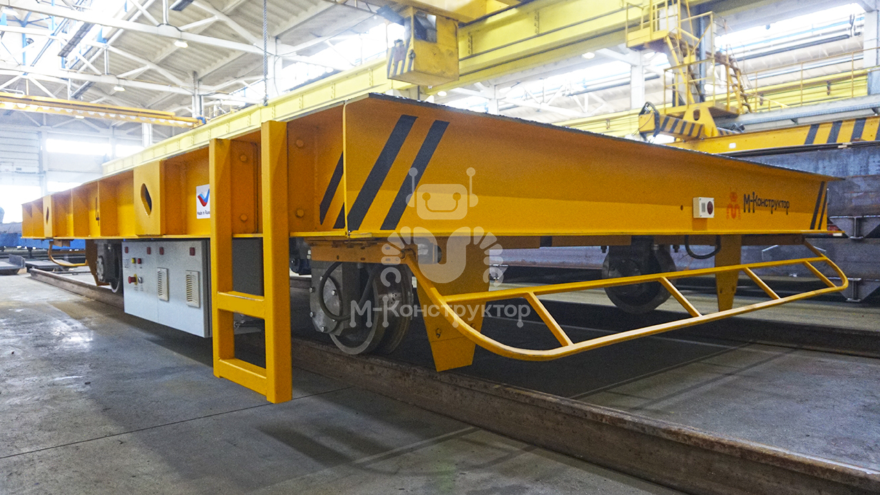 Компания "М-Конструктор" изготовит для вас надёжное звено логистики ЖБИ! Передаточная тележка грузоподъёмностью 40 тонн предназначена для безопасного и оперативного перемещения железобетонных изделий как внутри производственного цеха, так и на открытую площадку склада. Конструкция тележки рассчитана на интенсивную эксплуатацию в условиях тяжелых промышленных нагрузок, обеспечивая стабильную работу в рамках комплексных производственных циклов. Несущая рама из листового и фасонного проката служит прочной основой для всех узлов: ведущих и ведомых колёс, мотор-редукторов, электрооборудования и защитных элементов. Приводная система с асинхронными электродвигателями мощностью 2?5,5 кВт и редукторами гарантирует плавный ход и устойчивое движение при скорости до 40 м/мин. Управление возможно как с помощью радиопульта, так и со стационарного пульта, что повышает удобство и безопасность эксплуатации. Тележка оснащена защитными рамками с концевыми выключателями для аварийной остановки и светозвуковой сигнализацией. Габариты платформы (5545?3300 мм) позволяют транспортировать крупногабаритные изделия, а грузоподъёмность при распределённой нагрузке до 40 тонн делает её универсальным решением для предприятий ЖБИ. Использование передаточной тележки позволяет оптимизировать логистику внутри завода, сократить время на перемещение продукции и повысить общий темп выпуска изделий. Это надёжное решение, способное стать ключевым звеном в технологической цепочке современного производства.
