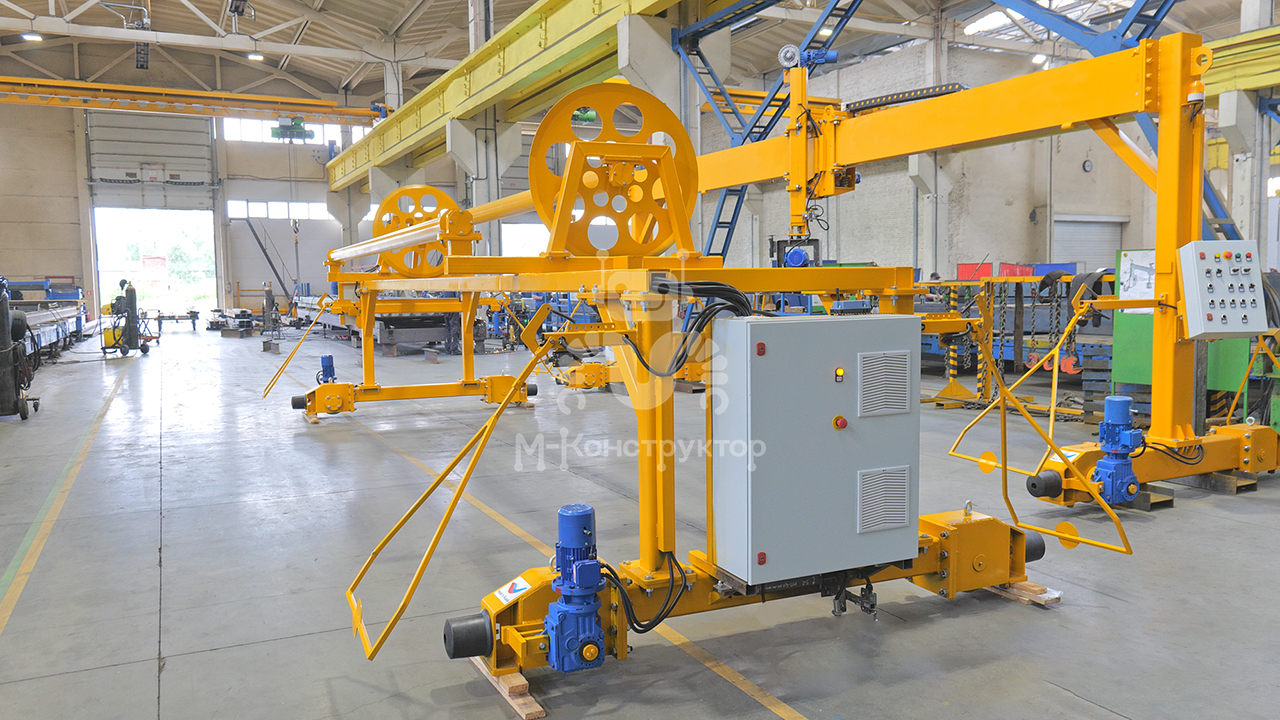 Установка обеспечивает равномерное накрывание свежезаформованных ЖБИ ПВХ-полотном, сохраняя оптимальную влажность и температуру на этапе начального твердения. Это предотвращает пересыхание бетона и снижает энергозатраты на прогрев.
