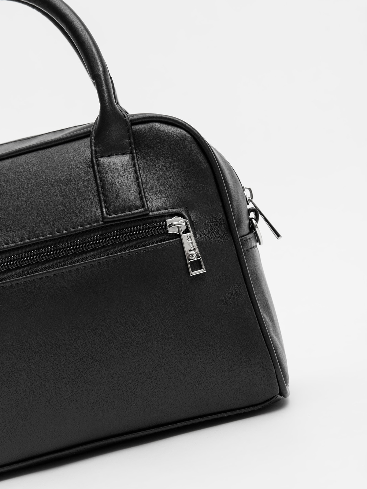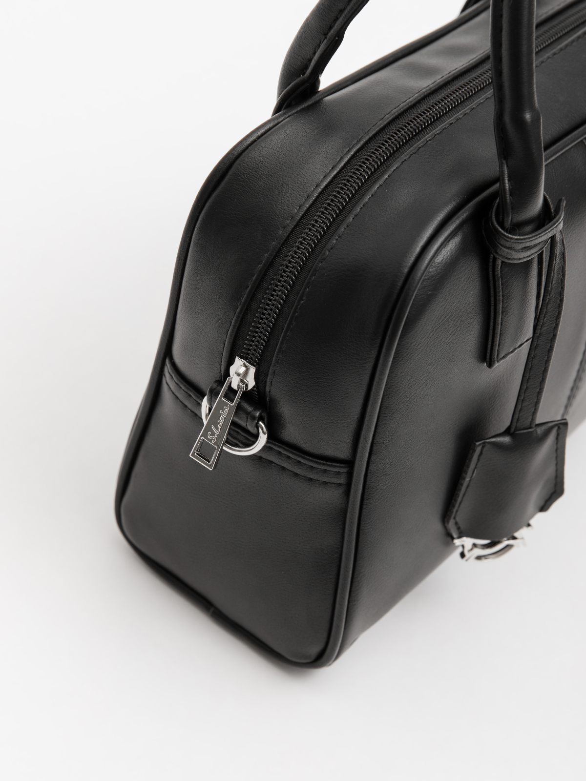 Актуальный силуэт в минималистичном дизайне легко сочетается с разными образами. Две ручки и длинный регулируемый ремень позволяют носить его в руке, на плече или как кросс-боди. Широкий бочок обеспечивает вместительность без громоздкости. Основное отделение дополнено задним карманом на молнии для быстрого доступа к мелочам. Внутри — карман на молнии для документов и отделение для телефона. Стильный съёмный брендированный декор добавляет индивидуальности.