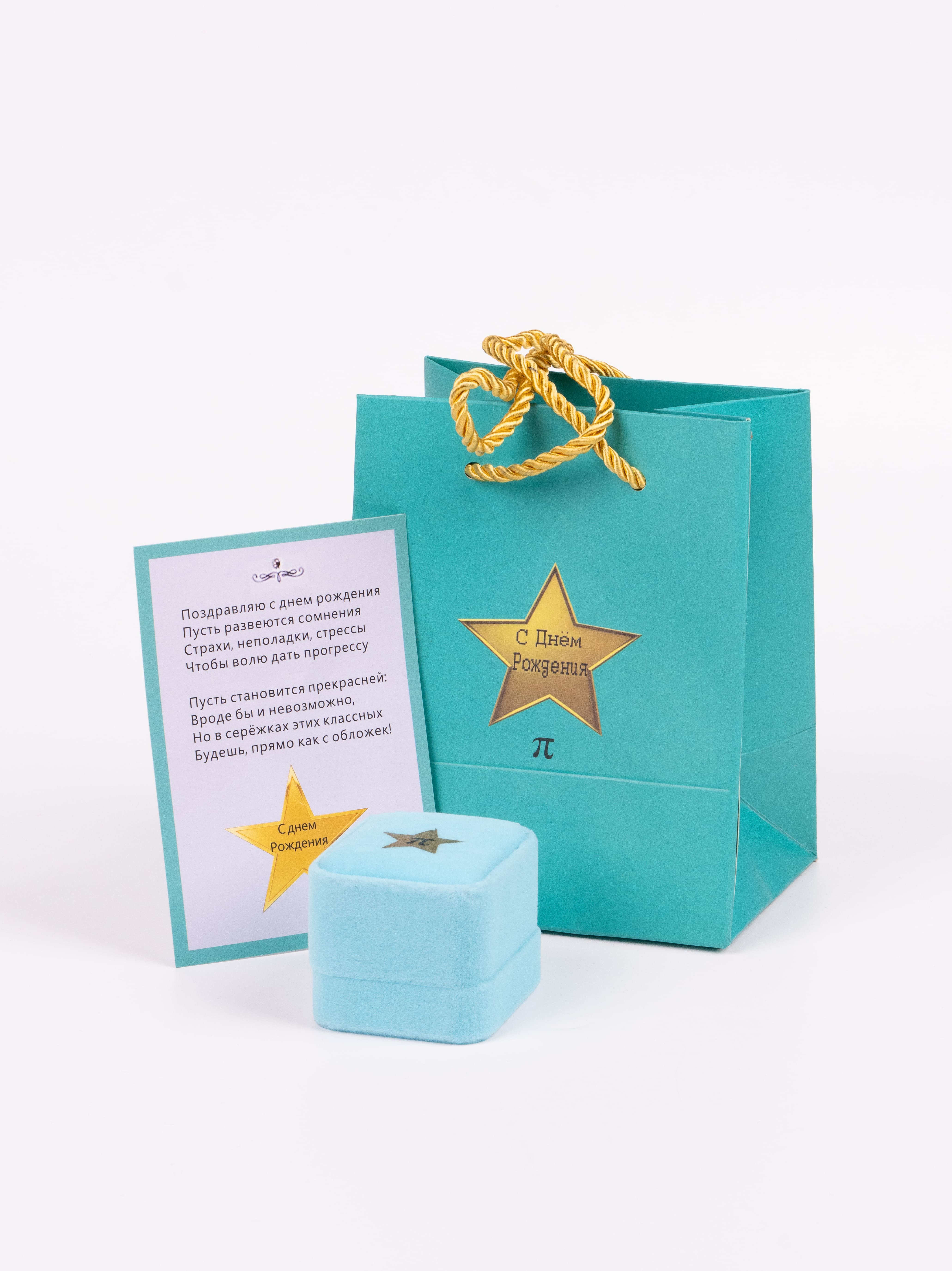 ✅ Специально разработанный дизайн подарка. Наборы исполнены в цвете Тиффани, включают в себя: серьги, футляр для их хранения, поздравительную открытку и стильный подарочный пакет.