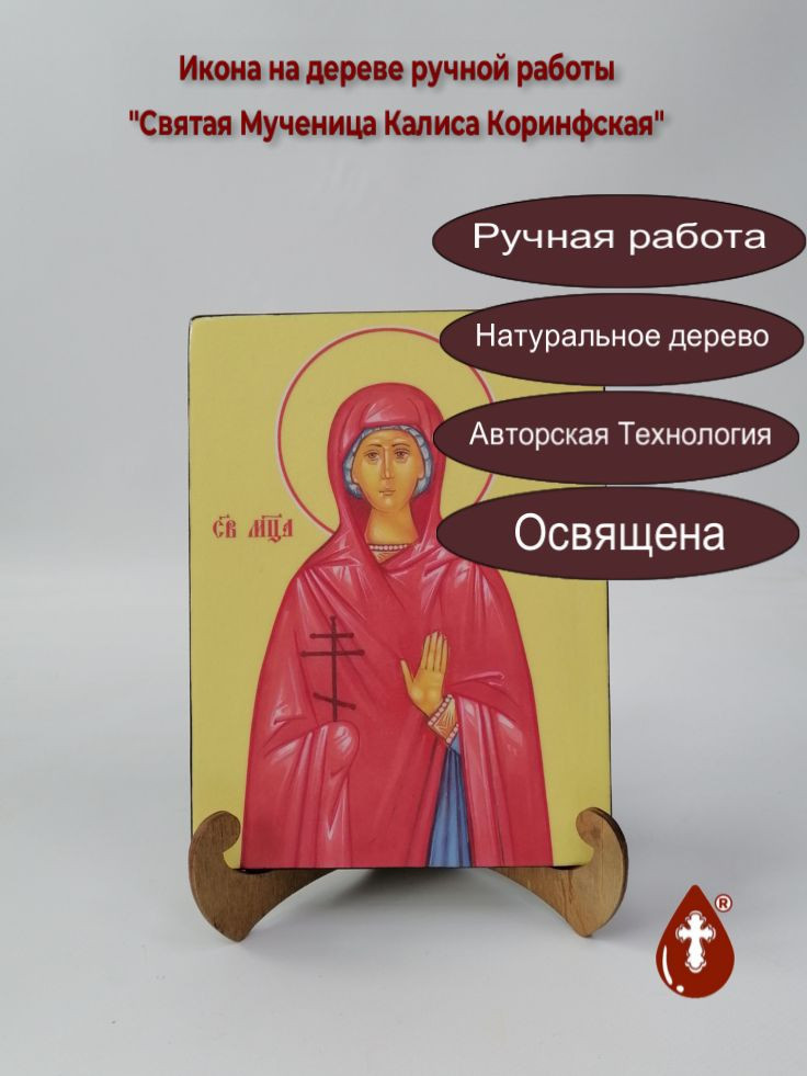 Икона на дереве "Святая Мученица Калиса Коринфская, 15x20x1,8 см, арт А6692" станет прекрасным подарком для верующего человека, а также займет особое место в любом доме, храме или церкви.