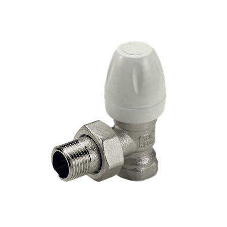 Угловой вентиль с термостатической опцией, с соединением для железных труб. Поставляется с регулировочной ручкой.