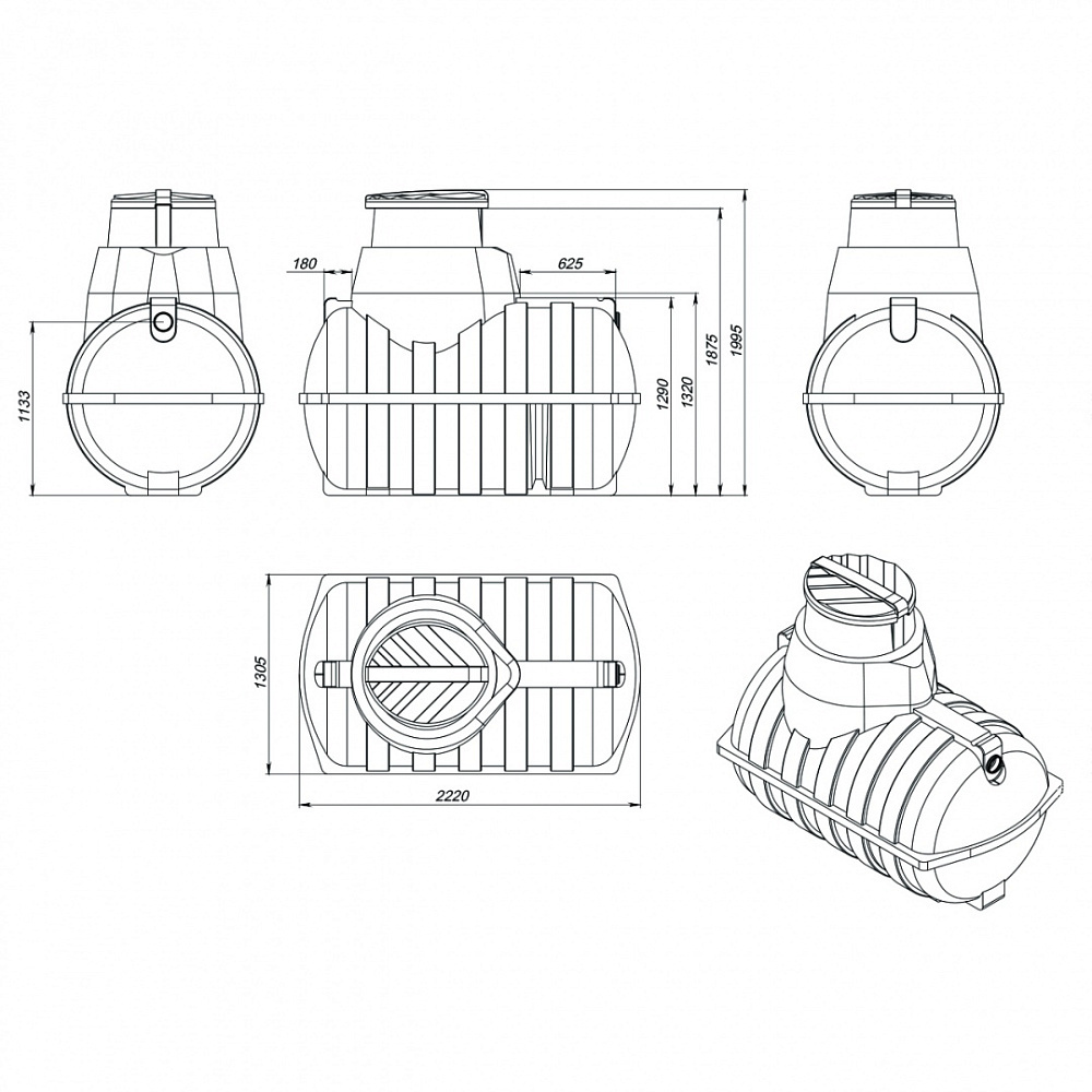 Уникальная форма с выраженными ребрами жесткости, обеспечивает прочность корпуса и делает возможным установку в любой тип грунта при любом уровне грунтовых вод.