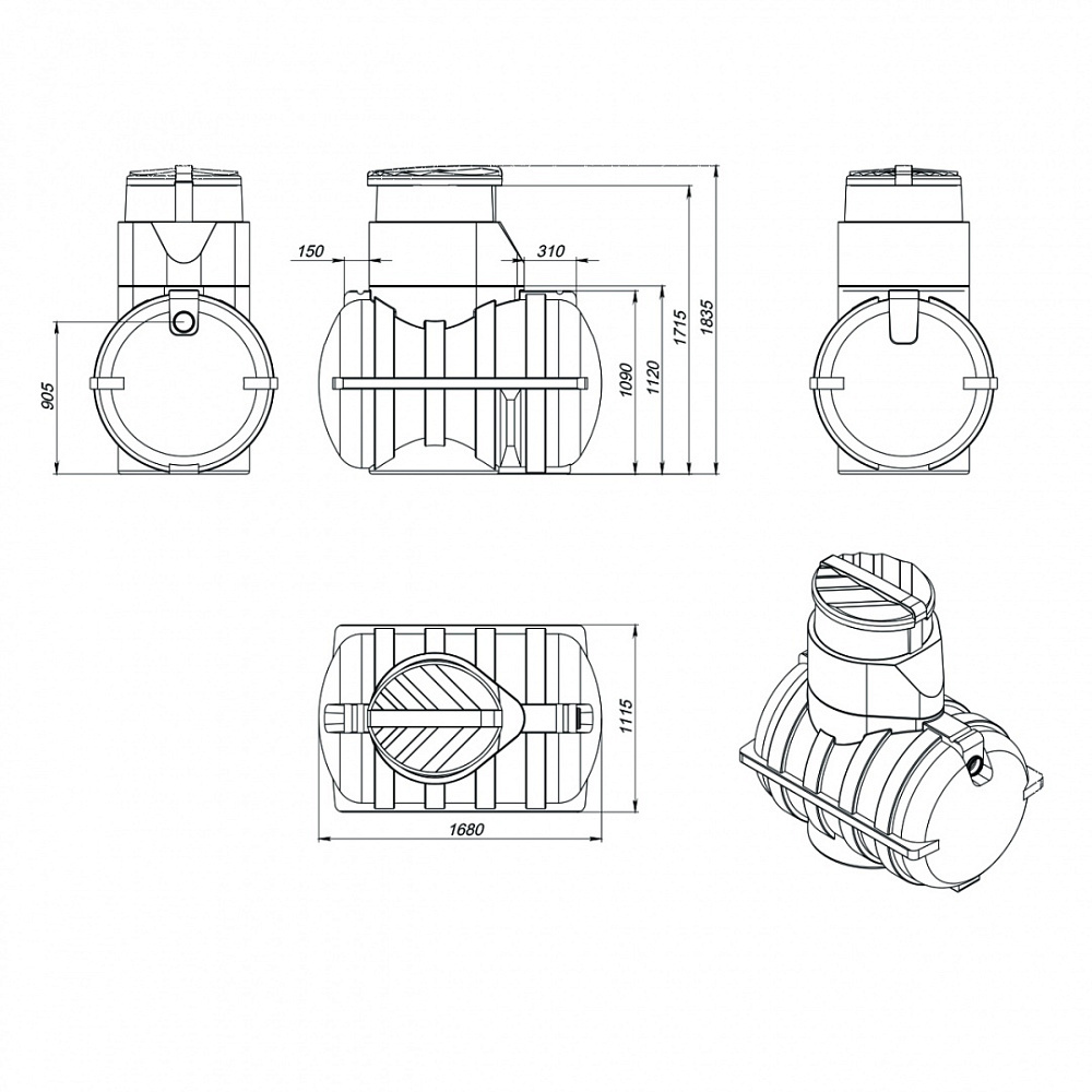 Уникальная форма с выраженными ребрами жесткости, обеспечивает прочность корпуса и делает возможным установку в любой тип грунта при любом уровне грунтовых вод.