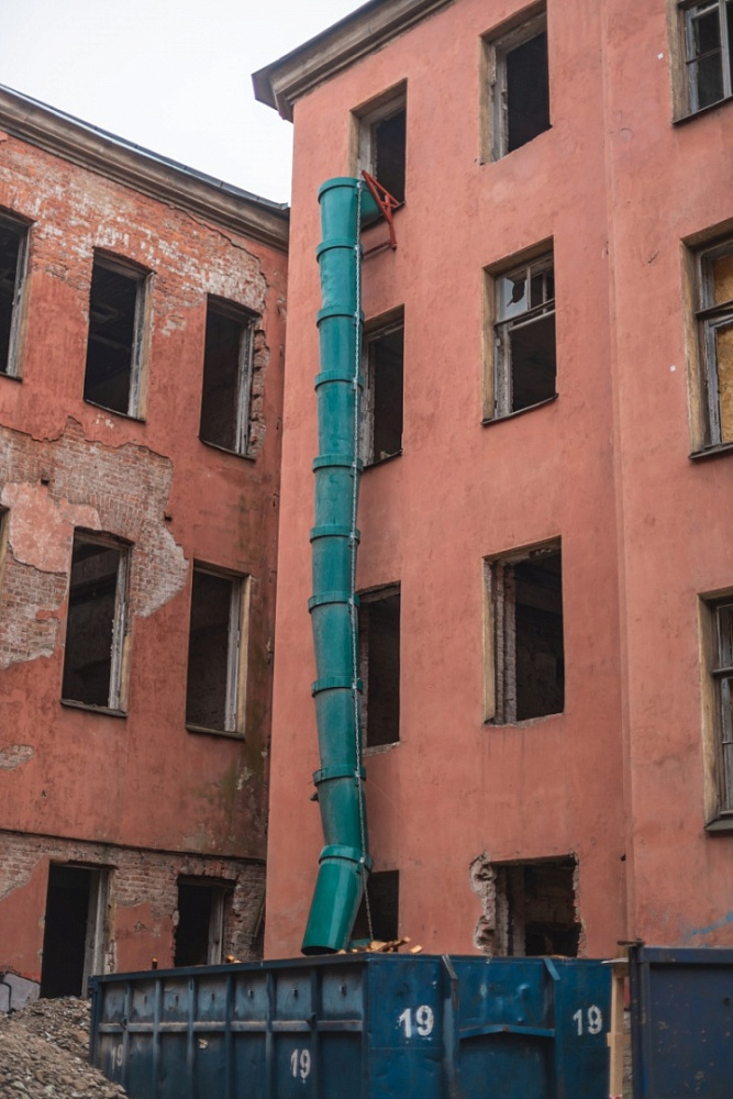 Усиленная прямая секция применяется для монтажа строительных мусоропроводов, которые работают с повышенными эксплуатационными нагрузками. Например, они могут применяться в тех случаях, когда предполагается сброс крупных и тяжелых фрагментов строительного мусора. В этих случаях обычная пластиковая секция может не выдерживать образующихся нагрузок.