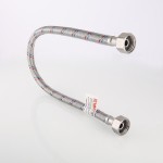 Подводки гибкие для воды VTf.001.IS рассчитаны на эксплуатацию при рабочем давлении 10 бар (максимальное давление – 20 бар) и температуре от 1 до 95 °C (максимальная температура – 100 °C). Внутренний диаметр шланга – 8,5 ± 0,5 мм. Закладной ниппель, накидные гайки, пресс-гильзы и оплетка подводок изготовлены из нержавеющей стали AISI 304. Использование ниппеля из нержавеющей стали позволило исключить излом этого элемента, повысить надежность всего изделия.