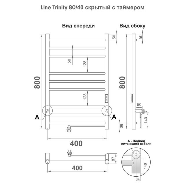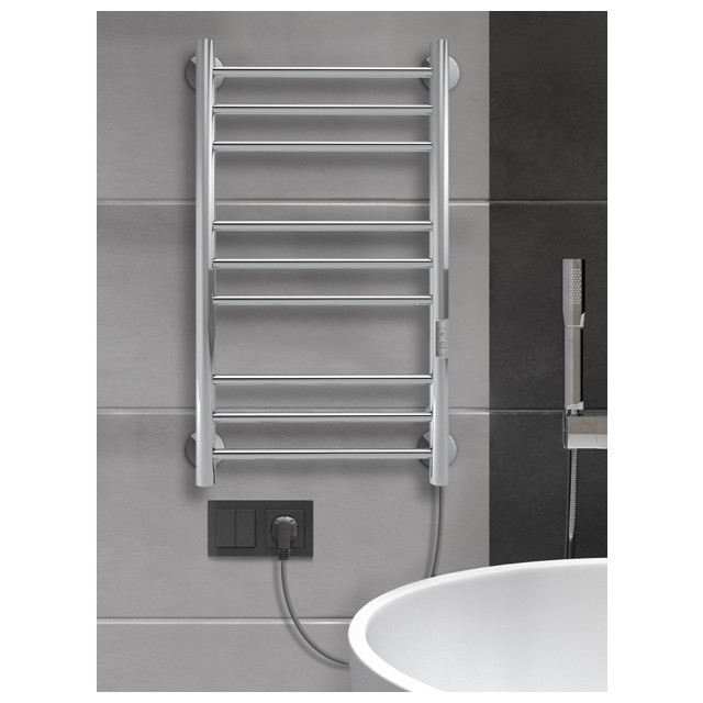 Полотенцесушитель электрический ''INDIGO Line Trinity'' выбирают за его технологичность и универсальность. Модель имеет терморегулятор нагрева и таймер на отключение. Универсальность изделия предусматривает подключение через прямой провод, который переставляется на нужную вам сторону, или скрытое подключение без покупки дополнительного переходника. Длина прямого провода 1,2 метра. Полотенцесушитель относится к энергоэффективным изделиям, потребляемая мощность в данном размере 110 Вт. Специальная технология нагревательного кабеля защищает полотенцесушитель от перегрева, что влияет на срок службы.