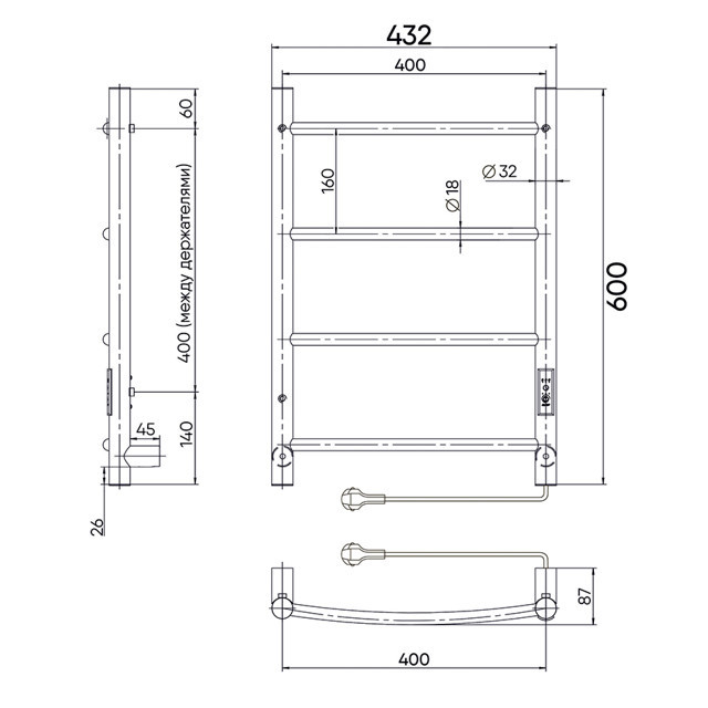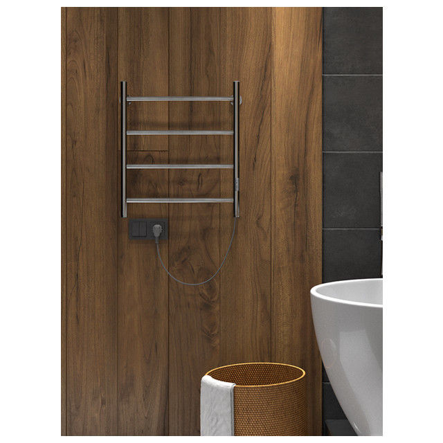Полотенцесушитель электрический ''INDIGO ARC Lux'' в размере 600 х 400 мм (В х Ш) выбирают за его технологичность и универсальность. Модель оснащена терморегулятором нагрева, у которого три режима: 40, 45, 50 градусов и таймером на отключение через 2, 4, 6 часов. Универсальность изделия предусматривает подключение через прямой провод, который переставляется на нужную вам сторону или скрытое подключение без покупки дополнительного переходника. Длина провода 1,2 метра. Полотенцесушитель относится к энергоэффективным изделиям, потребляемая мощность в данном размере 60 Вт. Специальная технология нагревательного кабеля защищает полотенцесушитель от перегрева, что положительно влияет на срок службы. В комплектации идут 4 телескопических держателя, комплект для монтажа и паспорт. Выбирая ''INDIGO'', вы получаете надежный продукт из нержавеющей стали с гарантией качества от российского производителя.