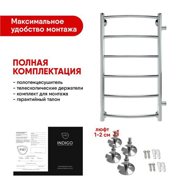 Полотенцесушитель водяной ''INDIGO Arc'' с боковым подключением размерами 700 х 300 мм (В х Ш) выбирают за его классический вид лесенки и функциональность. Модель изготовлена из высококачественной нержавеющей стали. Качественная металлообработка в местах подключений обеспечивает плотное прилегание прокладок. Полотенцесушитель проходит тщательный этап полировки, поэтому обладает безупречным блеском. В комплектацию входит само изделие, гарантийный талон, держатели (2 шт.), заглушка и кран Маевского. Для монтажа необходимо отдельно приобрести нужные вам фитинги. Полотенцесушитель ''INDIGO Arc'' застрахован и имеет гарантию 5 лет. Выбирая ''INDIGO'', вы получаете надежный продукт из нержавеющей стали с гарантией качества от российского производителя.