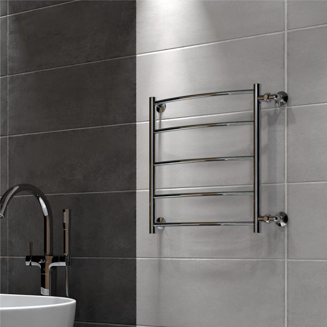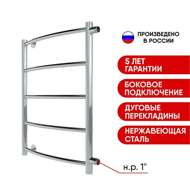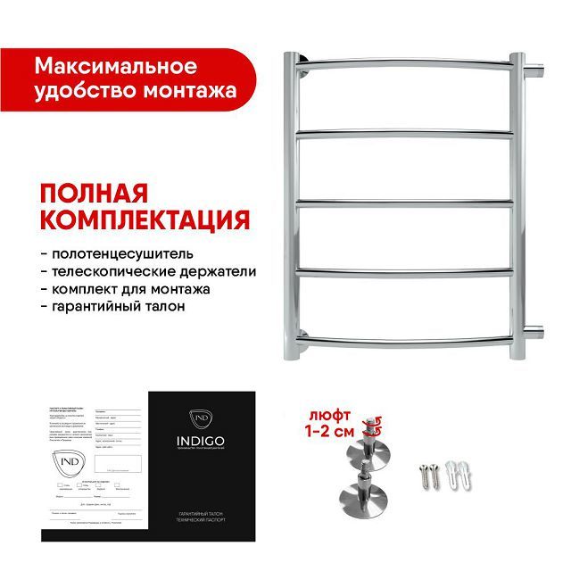 Стильный водяной полотенцесушитель ''Indigo Arc'' вида ''лесенка'' с дугообразными перекладинами. Для подключения могут понадобиться фитинги. Уточните данную информацию у мастера подключения. Рекомендуем дополнительно приобрести комплект фитингов диаметром 1'', 1/2'', или 3/4''.