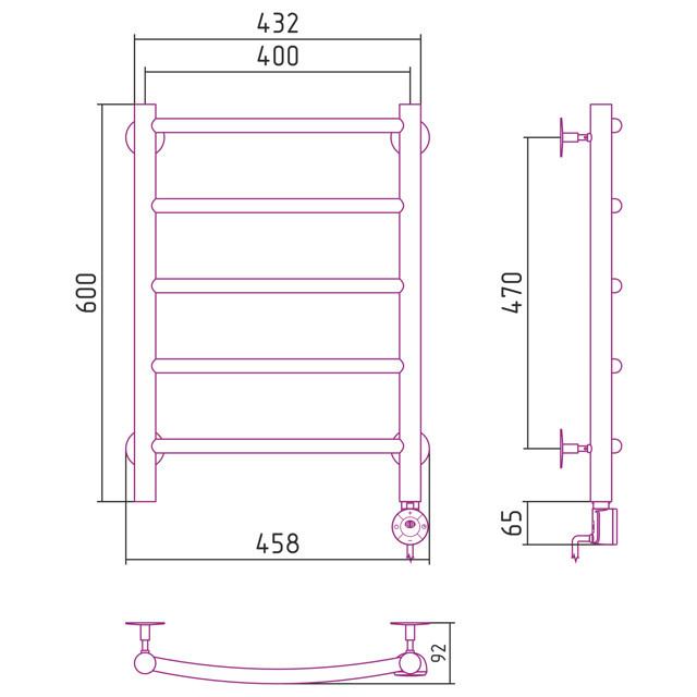 Бытовой полотенцесушитель для ванной комнаты. Предназначен для сушки текстильных изделий и обогрева ванных и душевых комнат.