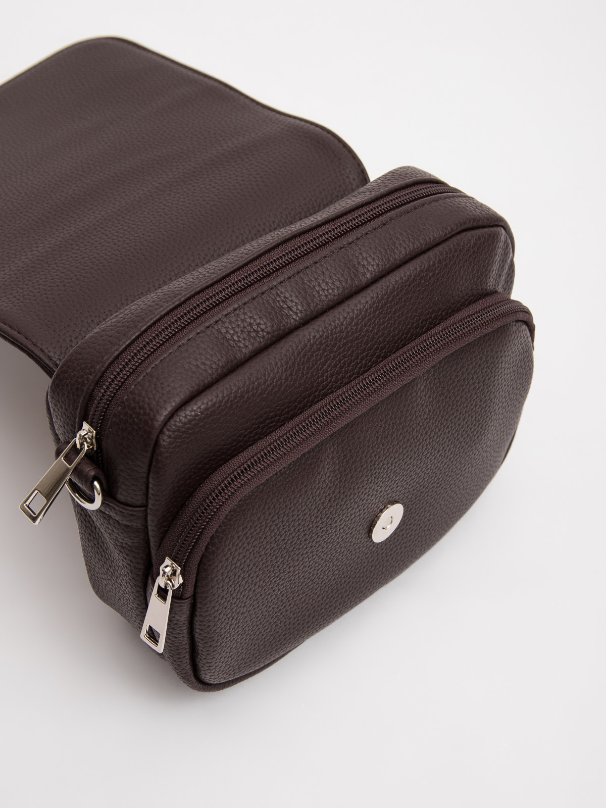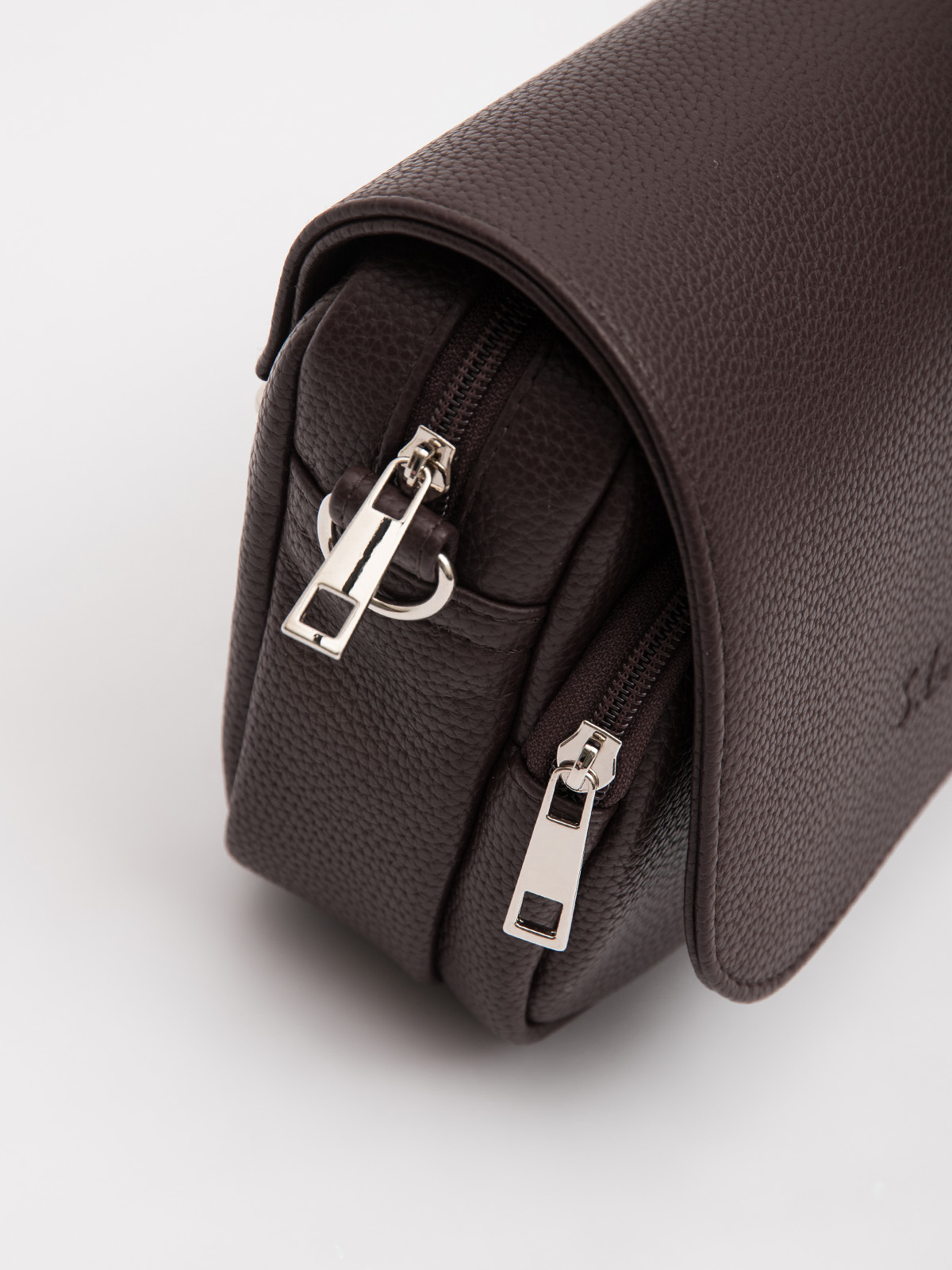 Стильная сумка кросс-боди размера S — идеальный баланс стиля и удобства для тех, кто ценит свободу движений. Объёмный передний карман, скрытый под элегантным клапаном, и удобный задний карман на молнии помогут компактно разместить все необходимые мелочи. Регулируемый ремень позволяет носить сумку на любом удобном уровне, подстраиваясь под ваш образ. Внутри вас ждёт практичный открытый карман для быстрого доступа к телефону или ключам. Лёгкая, функциональная и невероятно женственная — эта сумка станет вашим любимым аксессуаром.